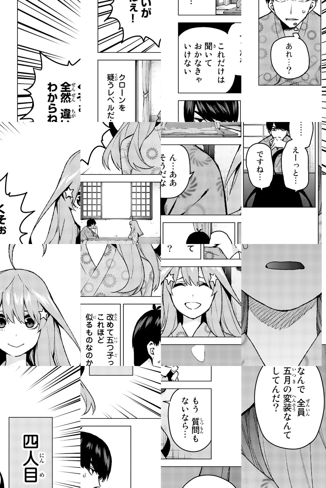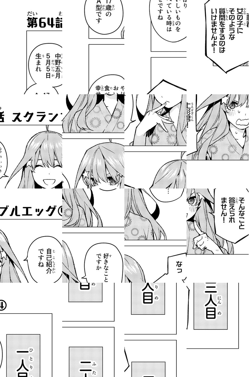 貧乏な生活を送る高校2年生・上杉風太郎のもとに、好条件の家庭教師アルバイトの話が舞い込む。ところが教え子はなんと同級生!! しかも五つ子だった!! 全員美少女、だけど「落第寸前」「勉強嫌い」の問題児! 最初の課題は姉妹からの信頼を勝ち取ること…!? 毎日がお祭り騒ぎ! 中野家の五つ子が贈る、かわいさ500%の五人五色ラブコメ開演!!