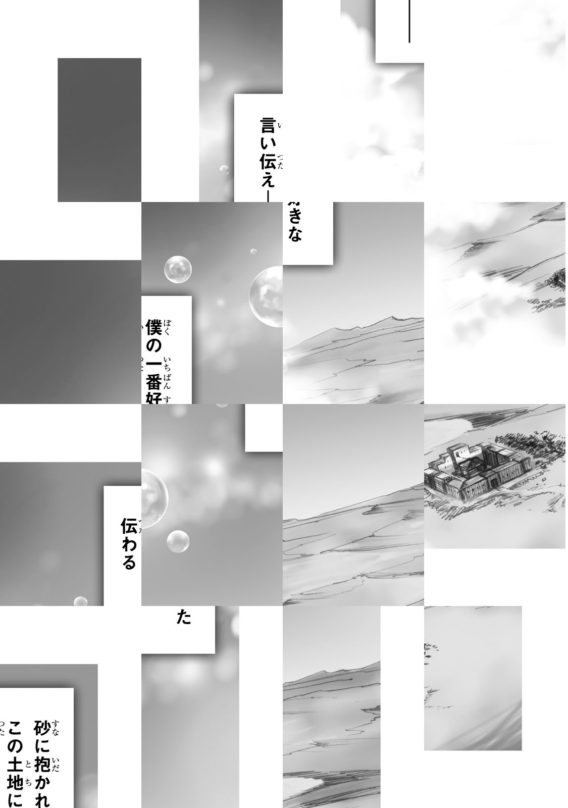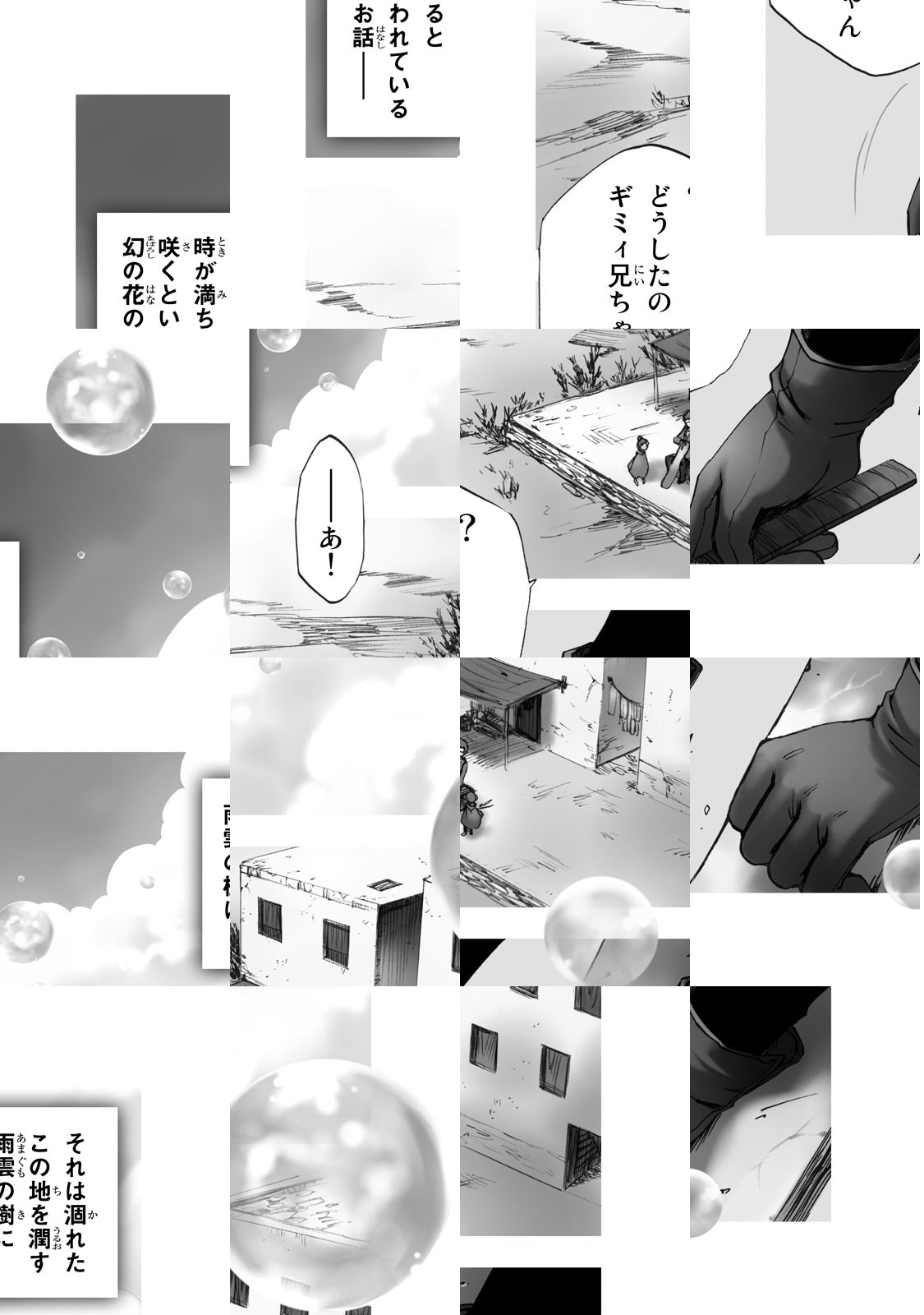 ここは砂漠に埋もれる田舎町。この町には雨を降らせる不思議な雨神「アメフラシ様」が住んでいた!ある日、少年・ギミィは雨乞いの供物に人形を作ることを頼まれる。しかし期日の朝までにできあがらず大ピンチ!それを見かねたギミィの双子の兄妹・ミルとメルは自ら人形になりすまして、供物台に向かうーー。だがそこに現れたのはムチ使いの少女・ソラだった!鈴見敦の贈るアクション・コメディスタート!