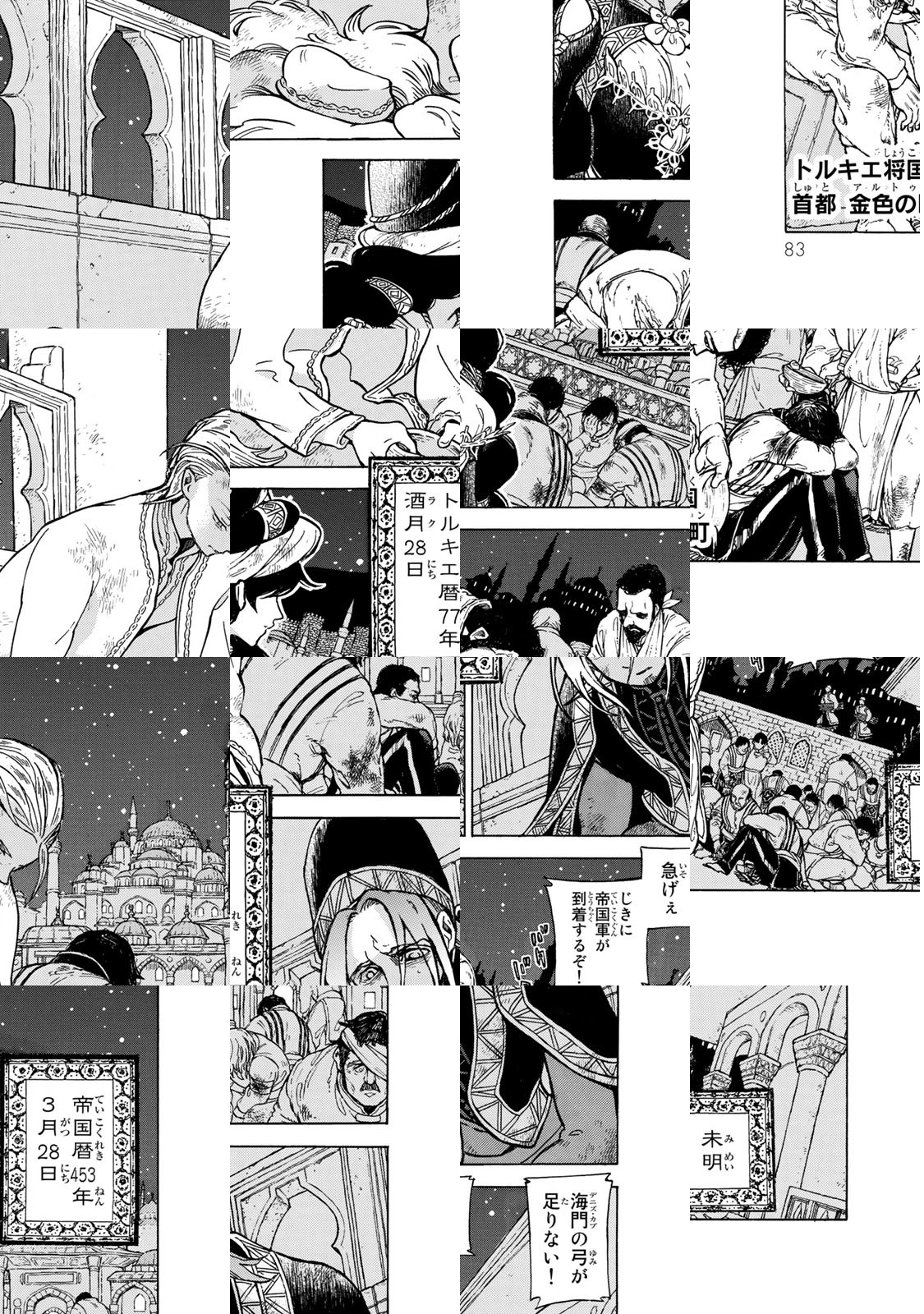 ここではない世界、今ではない時代。将軍(パシャ)と呼ばれる為政者たちの治める草原と砂漠の国・トルキエ将国。隣国・バルトライン帝国との戦争から12年、交易で得た巨万の富をもって復興を遂げたトルキエに再び、帝国の魔の手が迫る。就任10日目の新米将軍・マフムート、犬鷲・イスカンダルを相棒に国家間に渦巻く陰謀と策略を切り裂く!
