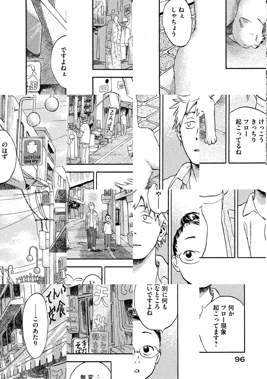 漆原友紀(『蟲師』『水域』)の最新タイトルは、”フロー”と呼ばれる奇妙な自然現象を処理するフロー業者・ヒロタと、アルバイトの智万ちゃん(見ため12歳、実年齢35歳)、そして”しゃちょう”(猫)が贈るストレンジなお仕事活劇! 三叉路が七叉路に増殖してたり、物体のカドがぜんぶ丸くなってたり、鏡の中に鏡反転の世界が生まれてたり。そんな変な光景を見かけたら、それは”フロー”。自然もときどき間違えるのだ。