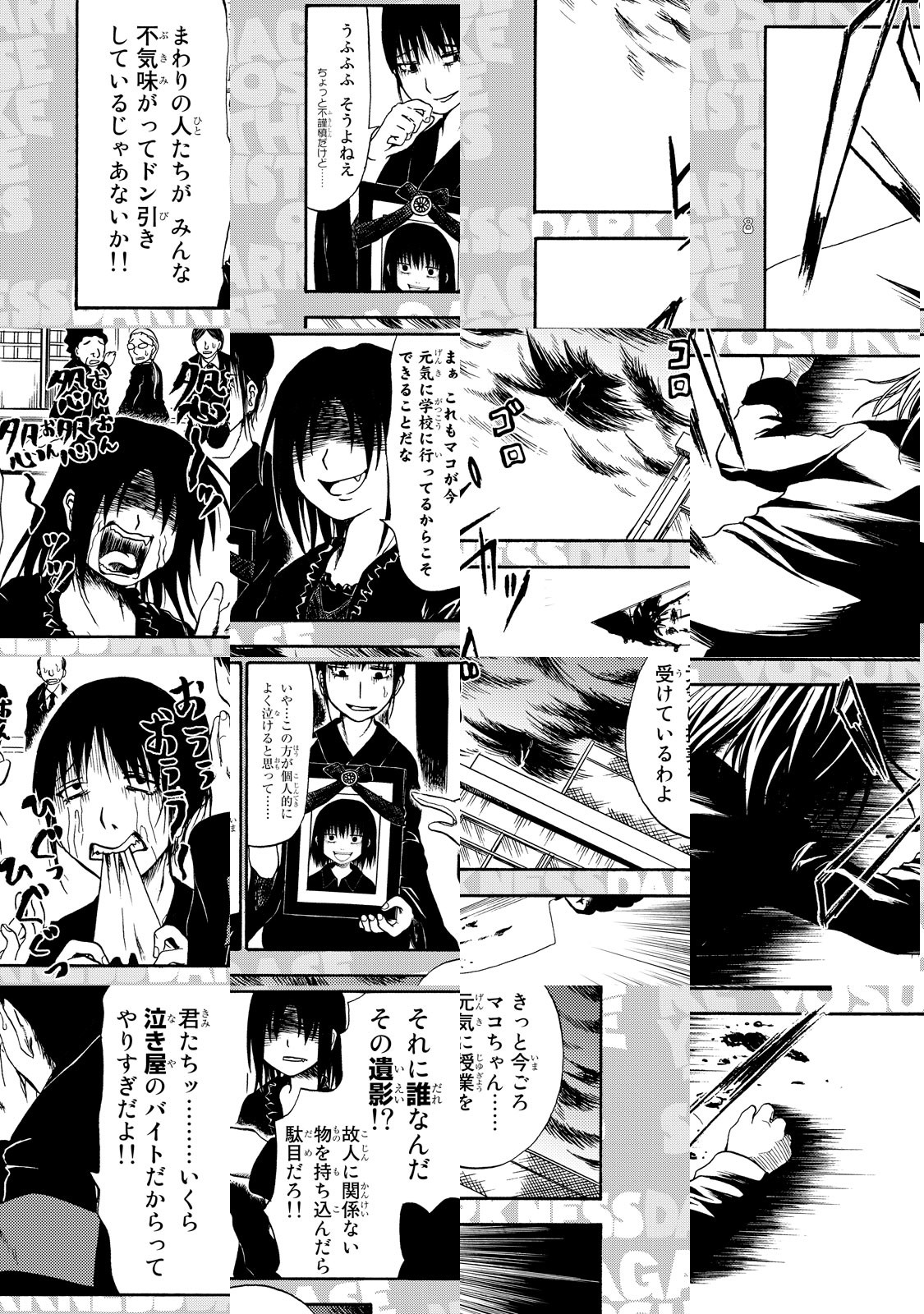 工業地帯N市の外れにある平屋――。ここには、ある三姉妹が住んでいる。網野家の三姉妹……。彼女たちは、その風貌と数々の奇行から、こう呼ばれ恐れられていた。……「闇の三姉妹」!  怖くて可愛い(こわかわ)ホラー4コマ。ホラー史上No.1お気の毒少女・マコを見守ってください!