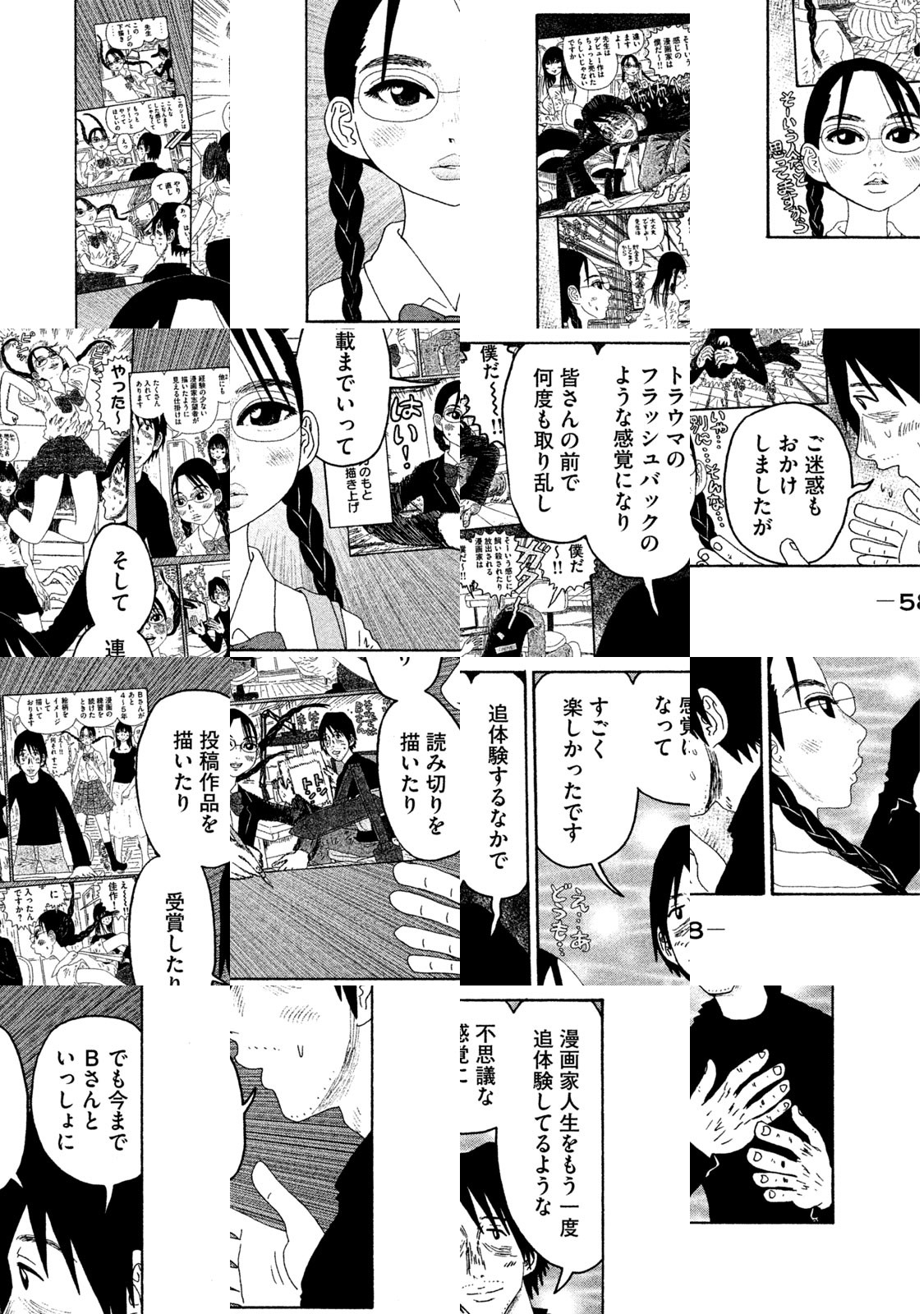 彼は終わった漫画家です。才能が枯渇しています。10年前の少年誌での初連載が小ヒットし知名度がゼロではありません。が、現在の仕事は地味な月刊誌での編集者主導の連載1本のみです。が、単行本第1巻の売り上げ悪かったため、最後の砦のこの連載も風前の灯、打ち切り寸前です。漫画界のネガティブキング・福満しげゆきが描く才能枯渇終わった漫画家漫画。