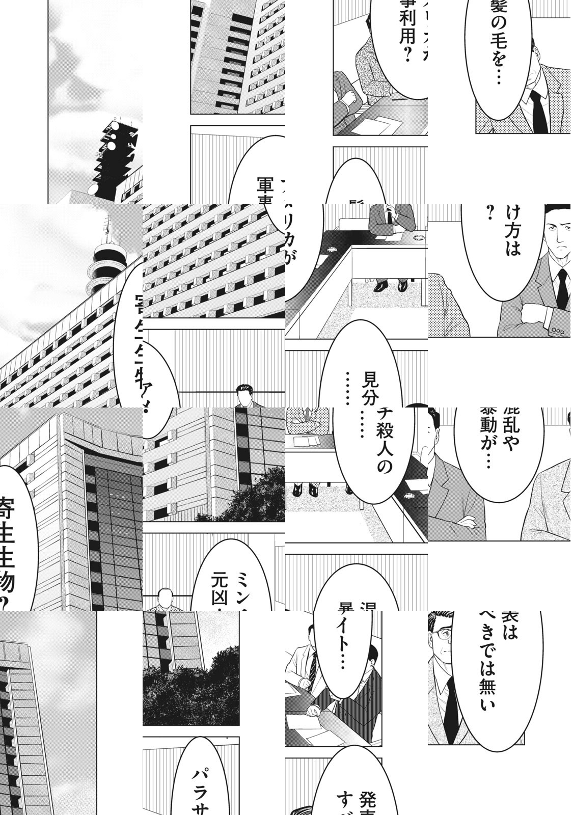 人類とパラサイトの生存競争は、終わる事無く世界中で続いている。新一とミギー、伝説の陰で繰り広げられた、もう一つの生存競争が明かされる。大量バラバラ殺人を捜査するベテラン刑事・深見。彼は、通報者の高校生・タツキの冷静さに、違和感を覚える。その違和感の源は、タツキの家族に在った…。不朽の名作「寄生獣」、その裏側を描く物語がここに開幕!