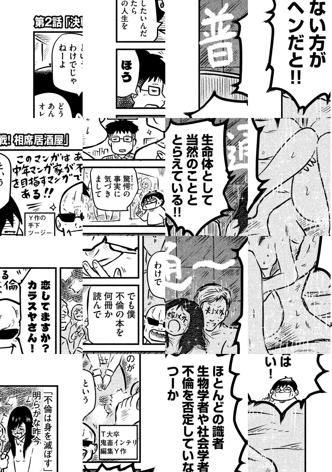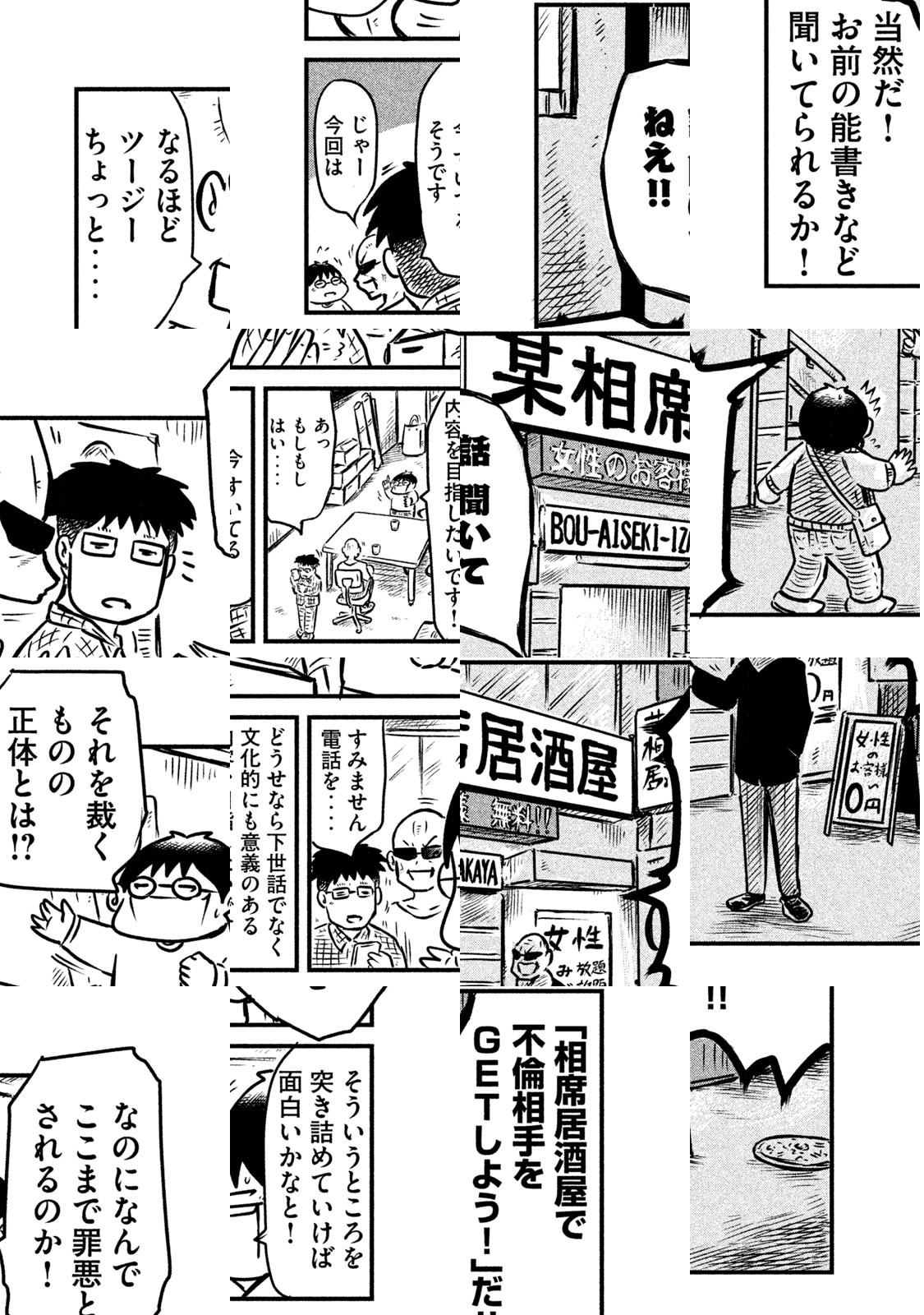 カラスヤサトシ(40代漫画家・既婚)が、相席居酒屋、合コン、街コン、お見合いパブなどの出会いの場に繰り出し、リアルに「不倫」に挑戦する!? 著者捨て身のドキュメント!