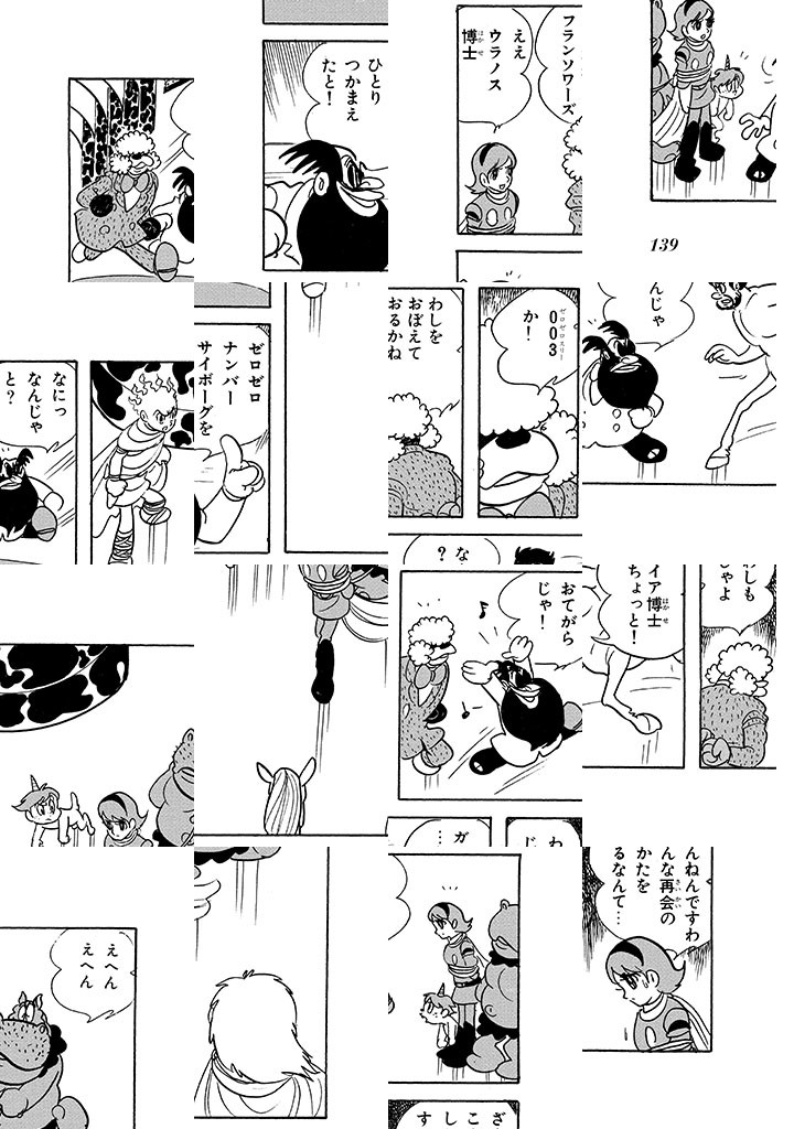 謎の男らにさらわれ、秘密基地の手術でサイボーグとなった少年ジョー。彼は009(ゼロゼロナイン)と呼ばれた。基地には001から008までの素晴らしい能力を持つサイボーグ仲間が。彼らは皆、死の商人「黒い幽霊団(ブラック・ゴースト)」の画期的な新商品の試作品として生み出されたのだ!戦争を企む一味から、9人のサイボーグたちは開発者ギルモア博士とともにX島に逃れるが……!?日本SF漫画史の金字塔、開幕!