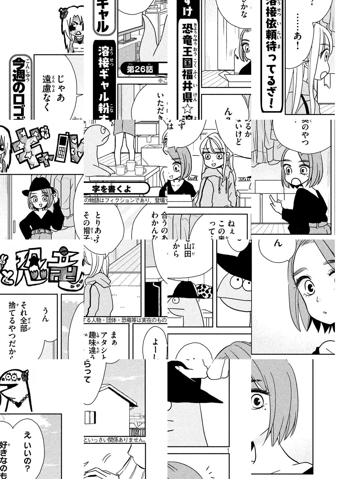 ノリで始まった恐竜とのルームシェア!フツーにご飯食べるし、オシャレも楽しむ恐竜だから、ギャルといっしょの生活だって結構イケる。ムズかしいことはよくわかんないけど、毎日が楽しければ問題ナイっしょ!雑誌掲載用にギャルたちに描いてもらったロゴも収録なんで、よろ。