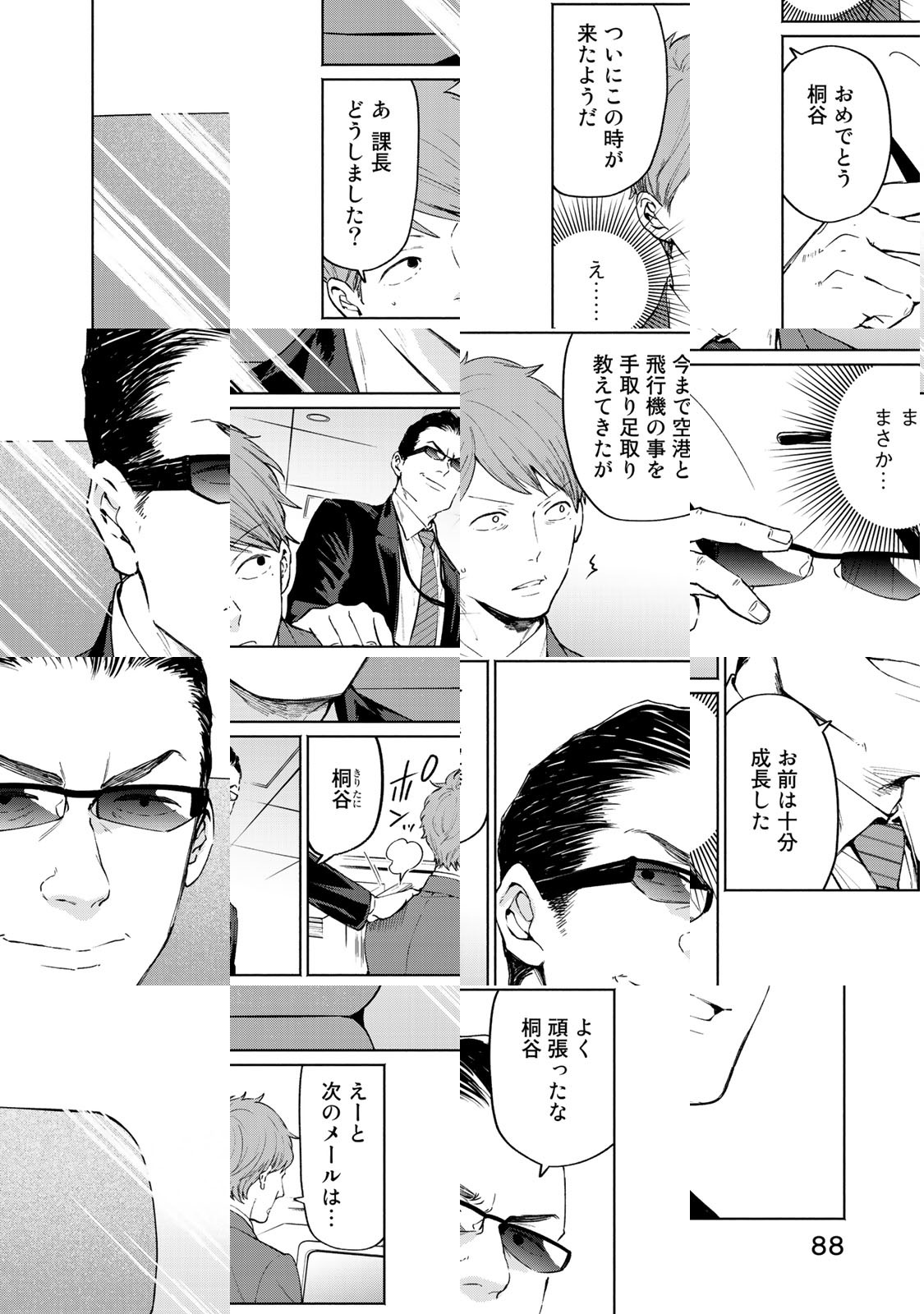 意識高い系の今どきの若手社員・桐谷は強面課長の竹内と北海道出張に赴くことに。 初出張の桐谷は羽田空港で課長から様々なダメ出しを受ける。それは仕事上のことではなく、空港・飛行機に関する無知さに対して。そう、課長は飛行機と空港を愛するいわゆるオタクだった。 課長から飛行機・空港の魅力について徹底的に叩き込まれる桐谷。はたしてどんな成長を遂げるのか。