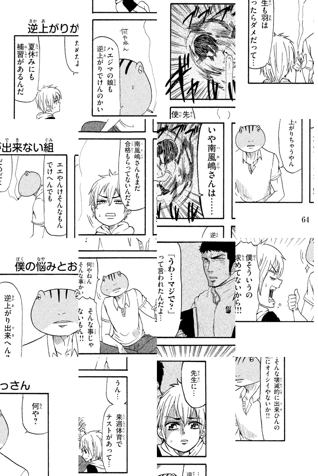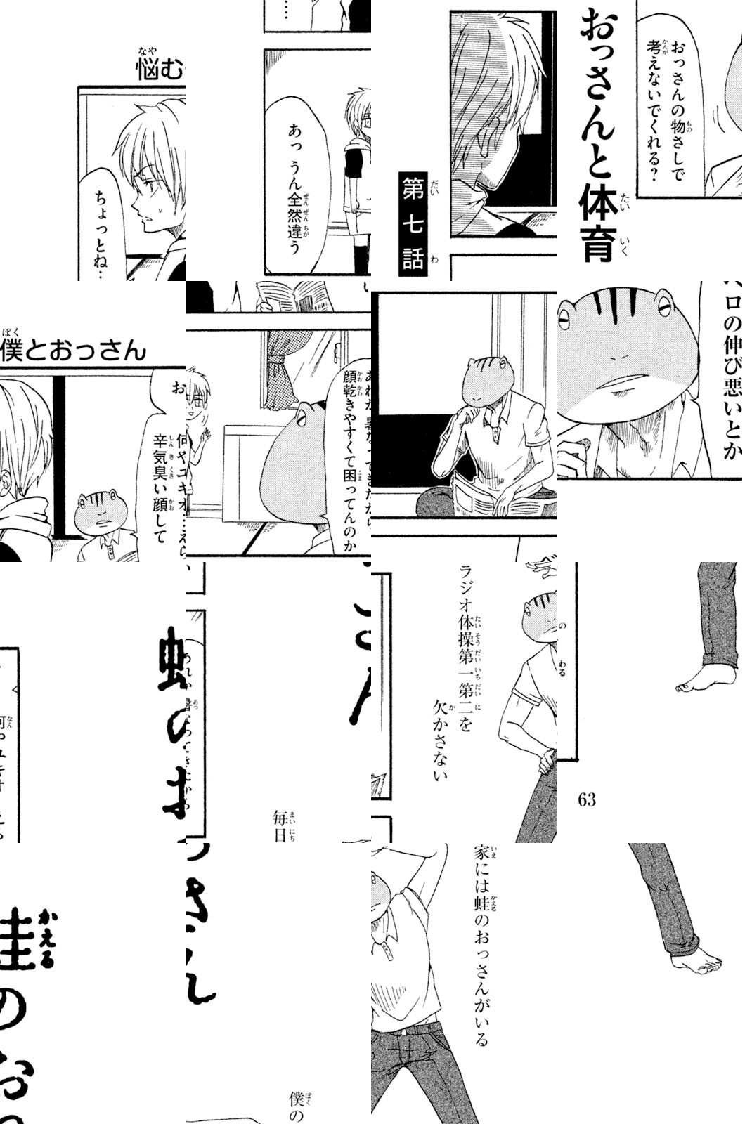 僕の名前は大野ユキオ。小学生です。僕の家には優しいお母さんと、頭が蛙で体がおっさんの蛙のおっさんがいます。…………………なんでだろう? 中年両生類と小学生の脱力同棲4コマ開幕!
