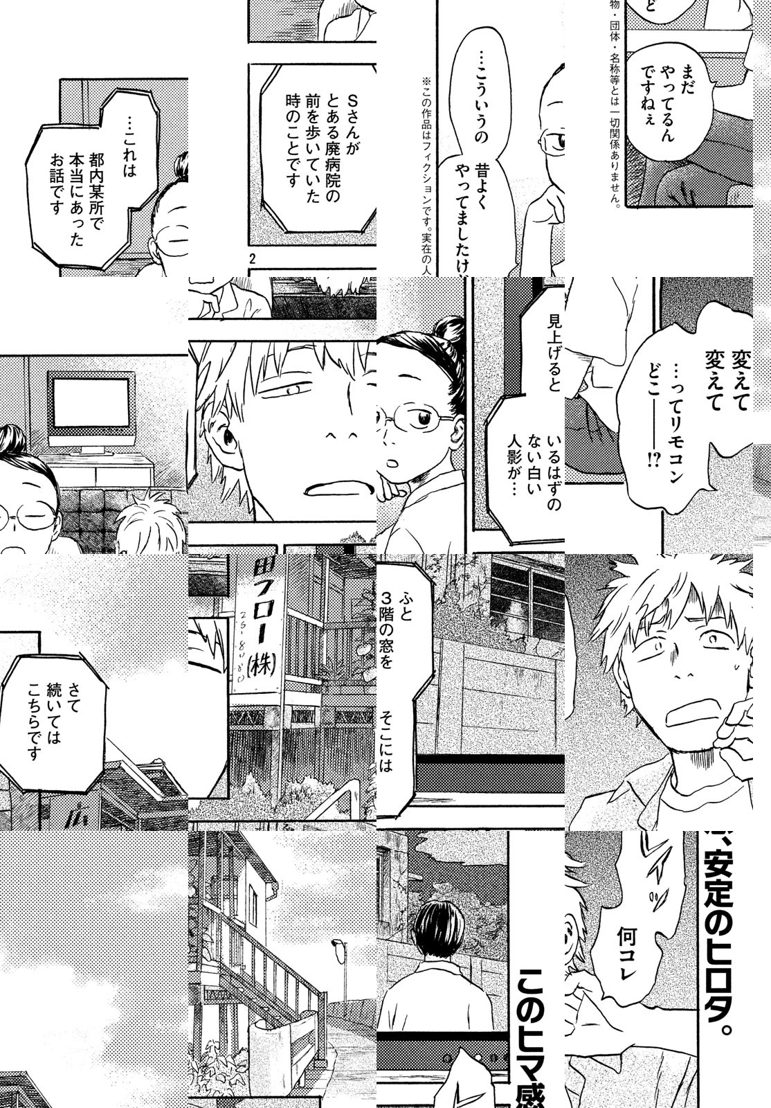 漆原友紀(『蟲師』『水域』)の最新タイトルは、”フロー”と呼ばれる奇妙な自然現象を処理するフロー業者・ヒロタと、アルバイトの智万ちゃん(見ため12歳、実年齢35歳)、そして”しゃちょう”(猫)が贈るストレンジなお仕事活劇! 三叉路が七叉路に増殖してたり、物体のカドがぜんぶ丸くなってたり、鏡の中に鏡反転の世界が生まれてたり。そんな変な光景を見かけたら、それは”フロー”。自然もときどき間違えるのだ。
