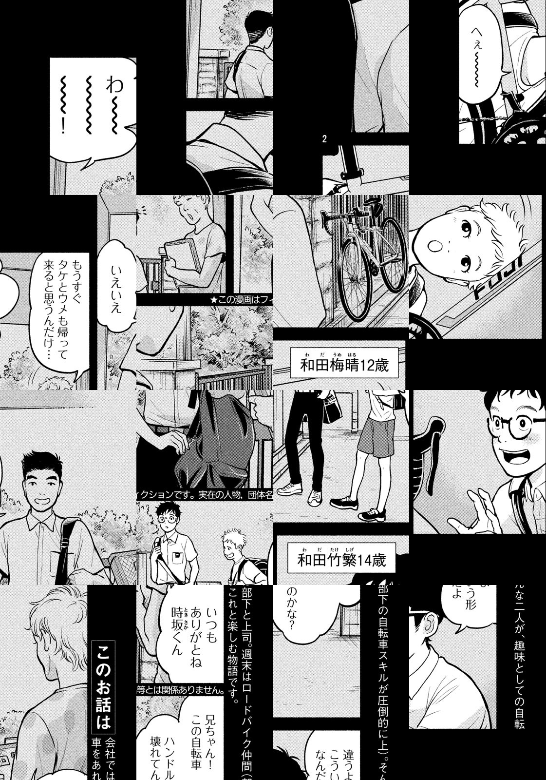 かつて自転車選手として将来を嘱望された竹繁が、サイクリングロードで意気投合したロードバイク初心者の矢美津。二人は「自転車」という趣味でつながり、仲間になる。しかし、実は矢美津は、竹繁にとって気安く話せない人物だった…! 家庭の悩み、職場のストレス。自転車を漕ぐだけで、みんな後ろに吹っ飛んでいく! 新しい自分、新しい世界が見つかるファンライドストーリー、開幕! 読むと自転車に乗りたくなる!!