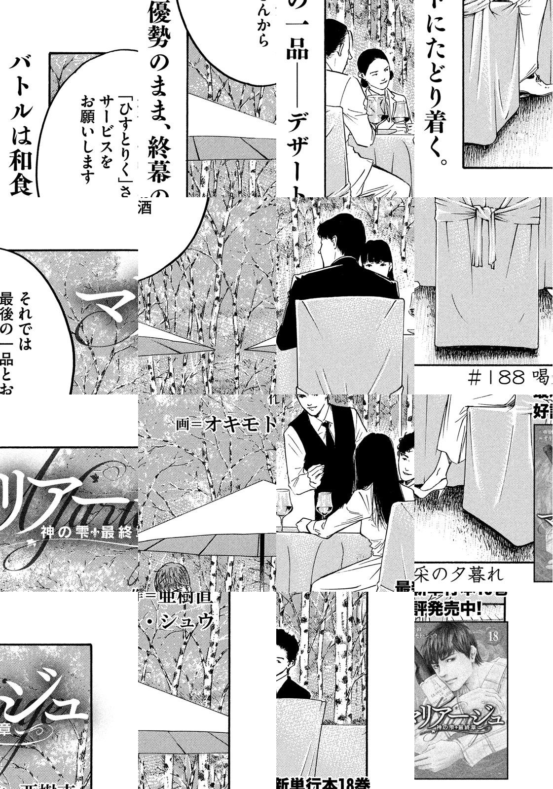 永きに亘る探求の旅がついに終わりを迎える…。世界的ワイン評論家・神咲豊多香の遺した言葉が〈天上のワイン・神の雫〉に至る道標となる!ワインの武者修行を経て成長を遂げた雫が料理とワインの『マリアージュ』に挑む。そして『神の雫』を巡る遠峰との最終戦がついに始まる!