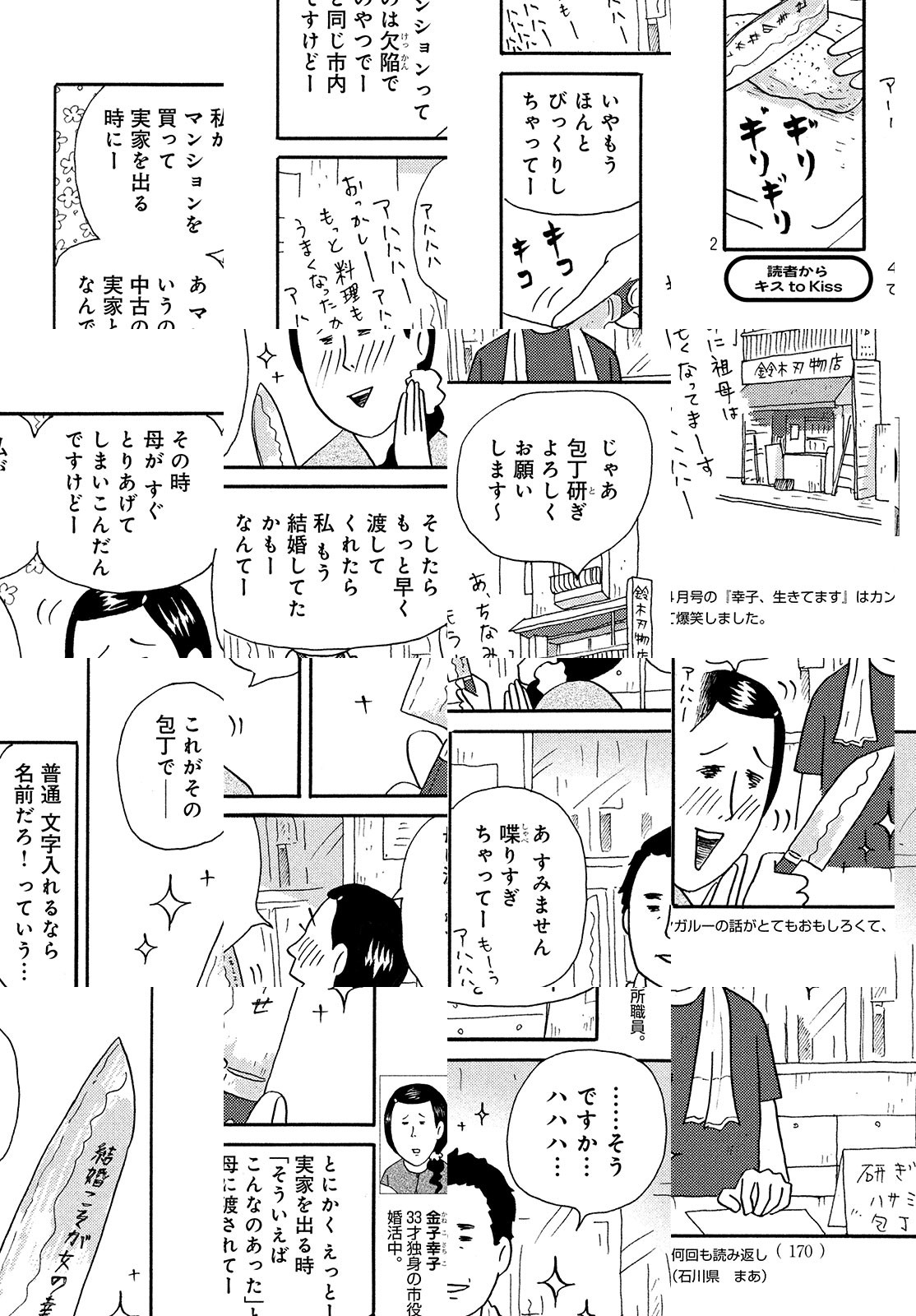 「金も幸も子もないものですから…」金子幸子、市役所勤務、33才独身、婚活中。今日も今日とて、真実の愛を探して生きてます…。悲しいときに部屋で一人創作ダンスを踊ったり、元彼にもらった魚拓を持って旅に出たり。不幸っぽいけどなんか楽しそう!?シュールでフフッと笑っちゃう、幸子の世界をご覧あれ!