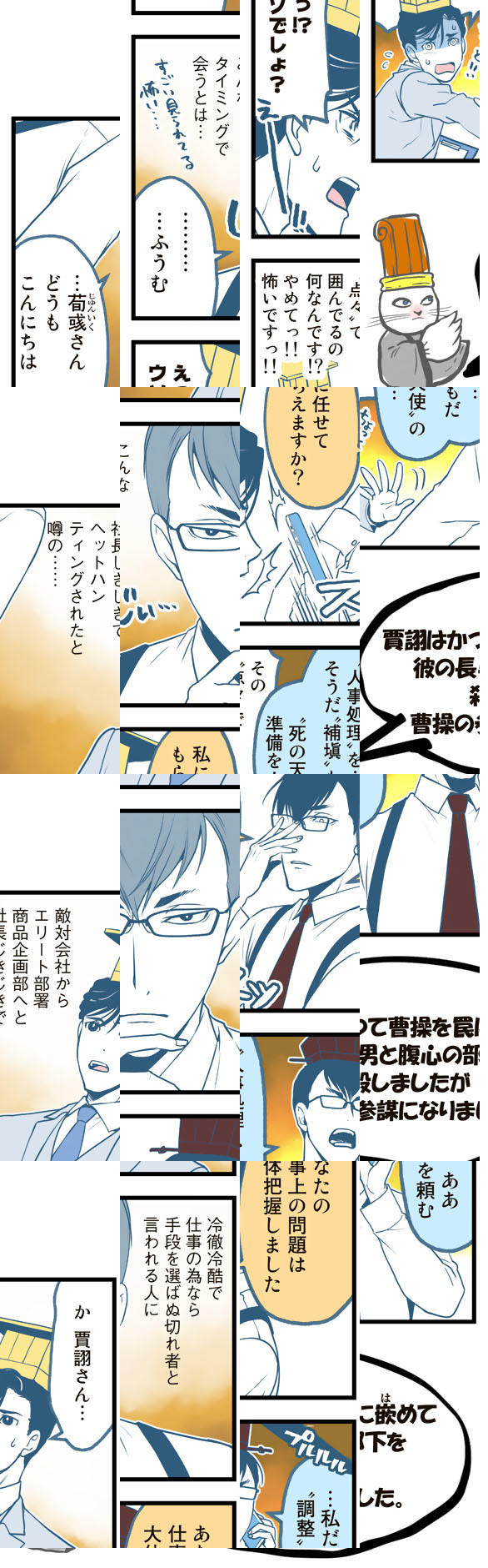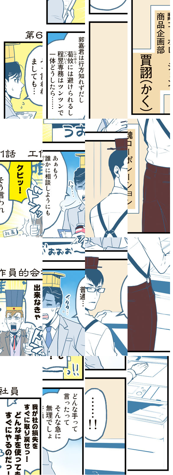 三国志といえば「魏(ぎ)」「呉(ご)」「蜀(しょく)」の三国による覇権争いが売りですが、この漫画では「魏」「呉」「蜀」はただの会社で、三国志の英傑たちはしがないサラリーマン。大商社「魏」の社長はサラリーマン川柳にご執心。三代続くおもちゃメーカー「呉」の社長は無気力体質。ITベンチャー企業「蜀」の若社長は「徳さえあれば金はいらない」主義者。いつだって困るのはそんな社長の下で働く社員たちです。