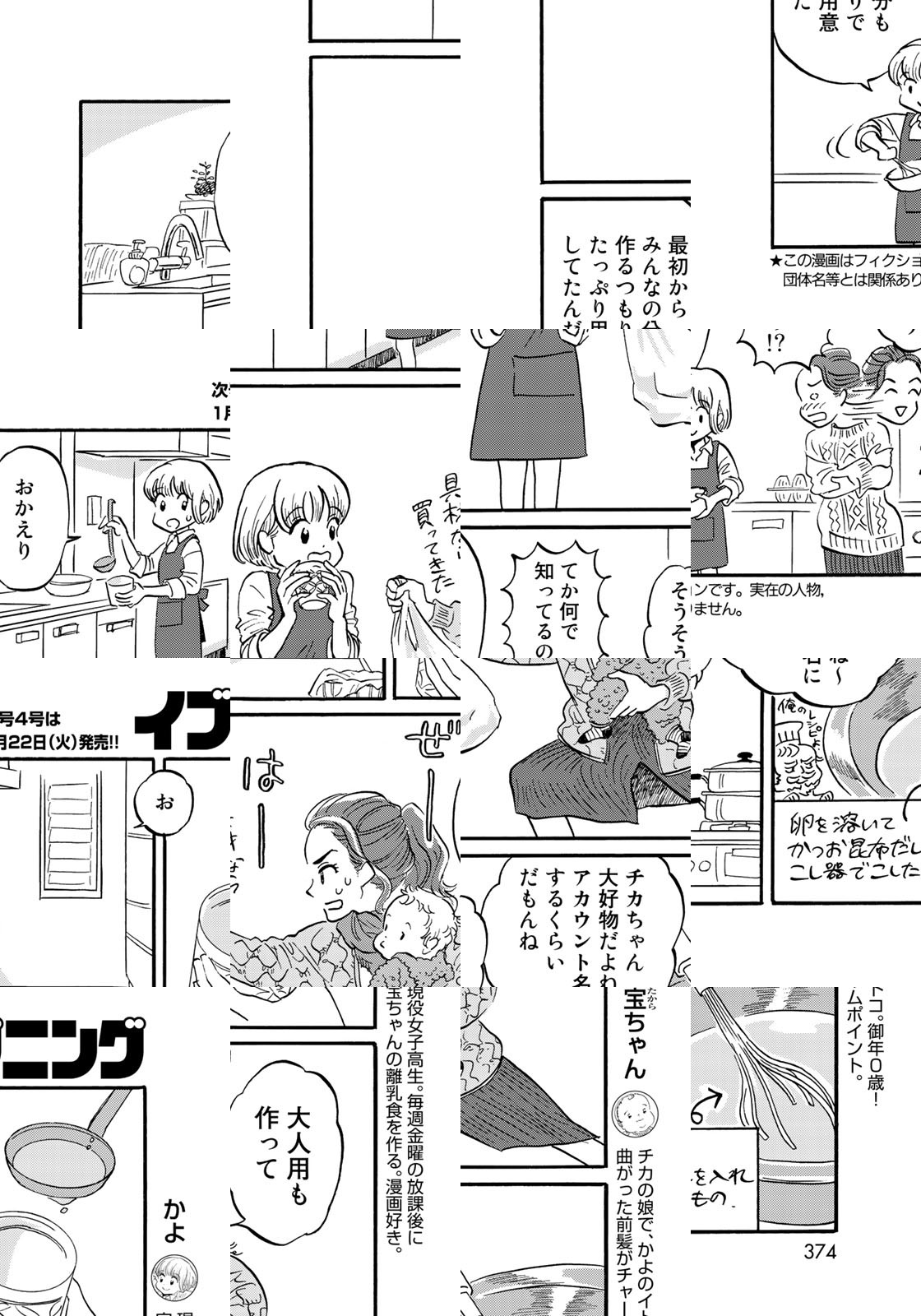 普通の女子高生かよちゃんには、ある方の専属シェフの顔がある。その方とは――従姉妹の宝ちゃん、御年0歳!! 日本で初めてグルマン世界料理本大賞を受賞した『ま・ごはん』の完全協力の下、異色の放課後〝離乳食〟グルメ漫画スタートです! 赤ちゃんのためだけをいっぱい詰めました♪
