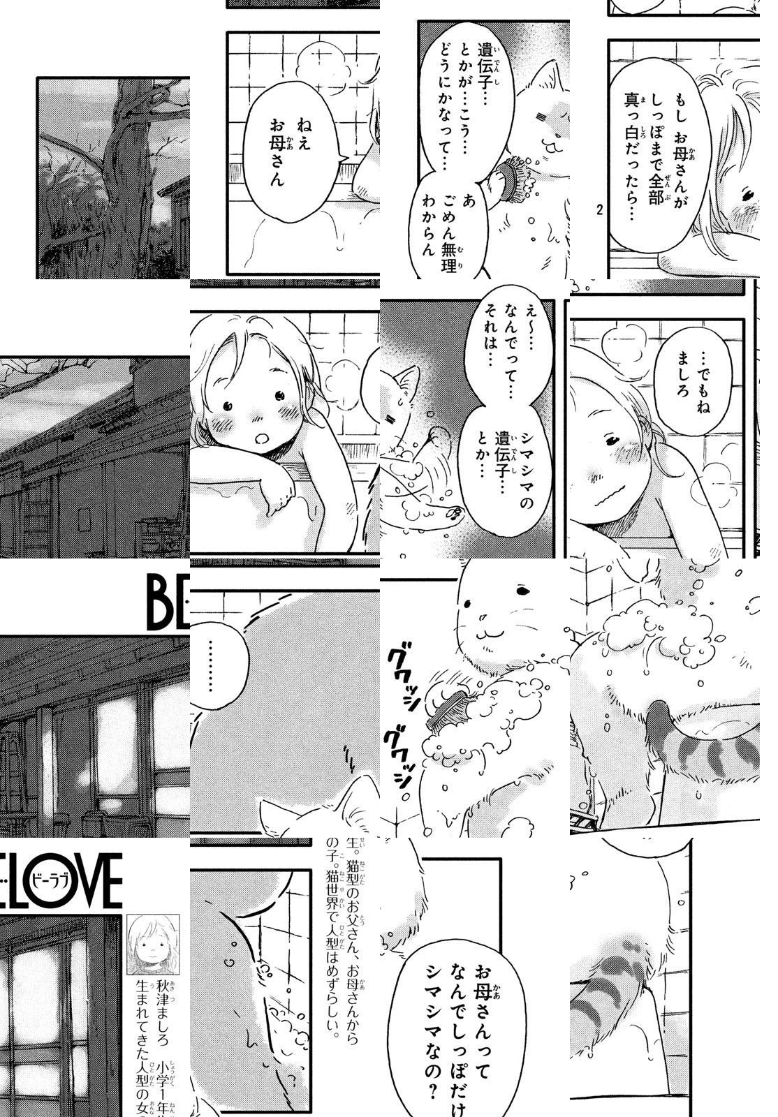 猫型しかいなくなった世界に人の姿で生まれてきたましろ。小学生になり集団生活の中で「自分だけがみんなと違う」ことに疑問を抱きはじめて? 猫の世界で生きる少女と、彼女を温かく見守る猫の両親の物語♥