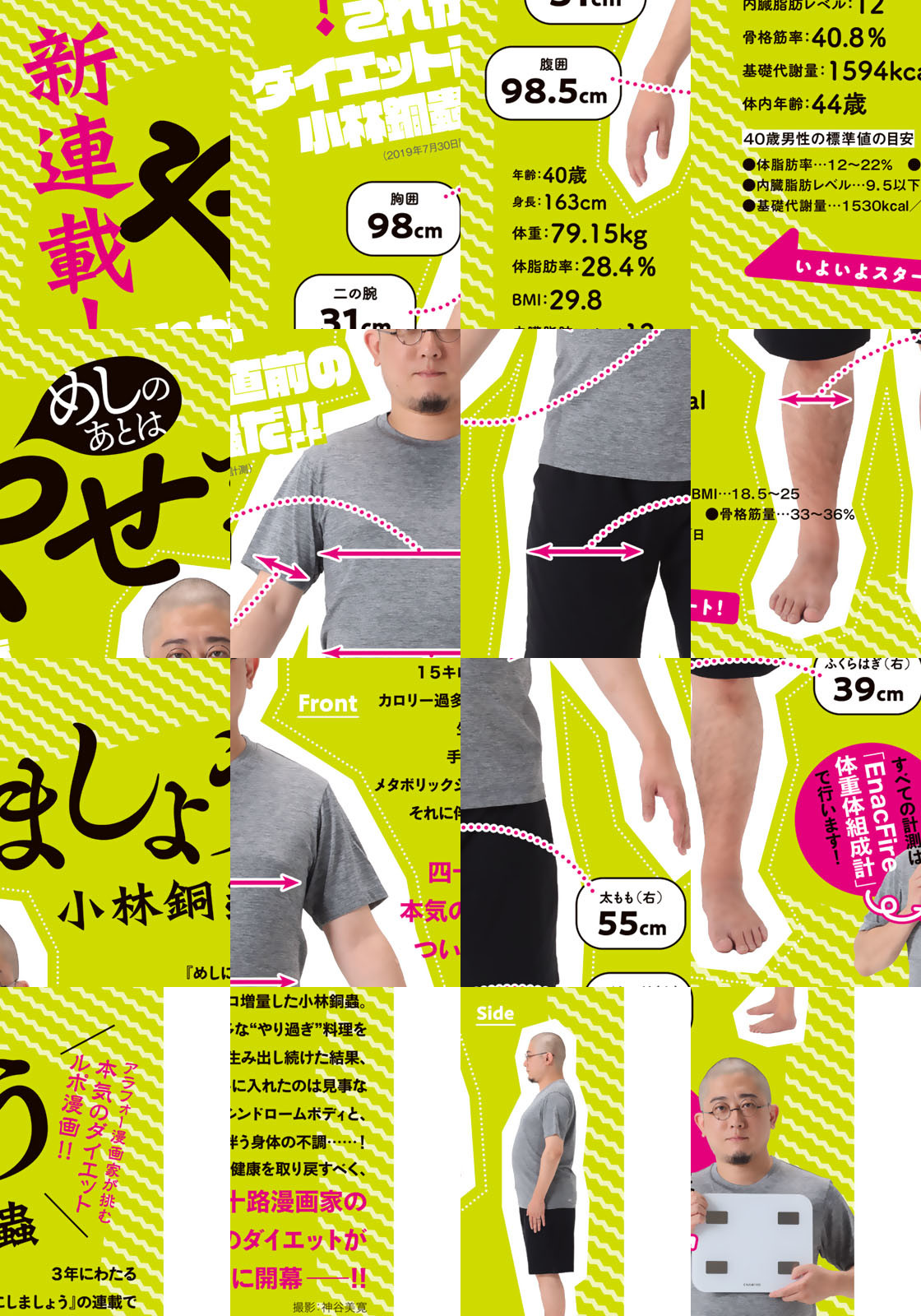 数多の“やり過ぎ”料理を生み出した『めしにしましょう』の作者・小林銅蟲、40才。3年の連載で肥えに肥えた体にカツを入れるべく、次なる連載はダイエットルポ漫画!目標は6ヵ月でマイナス15㎏――! 四十路漫画家の本気のダイエットに刮目せよ!※雑誌掲載時は『めしのあとはやせましょう』というタイトルでした。