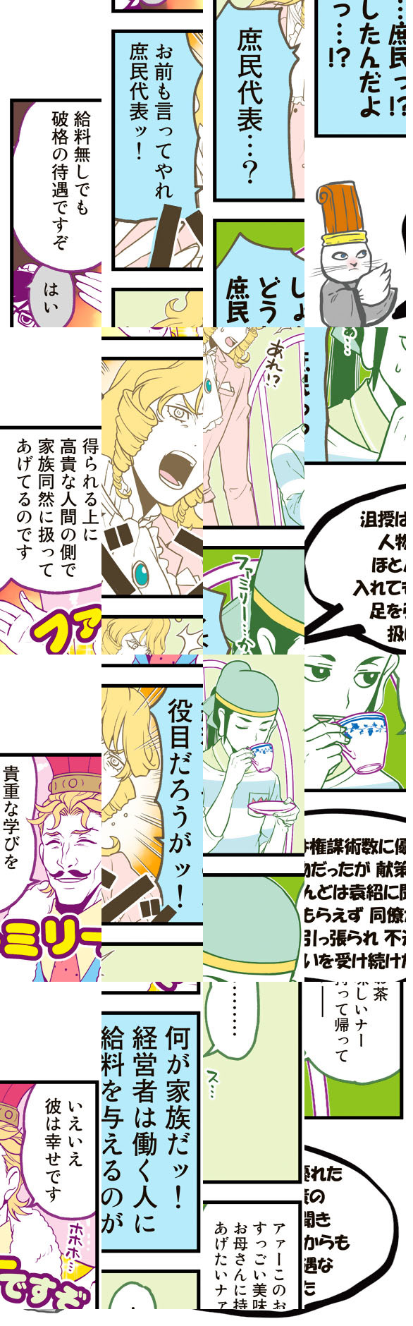 三国志といえば「魏(ぎ)」「呉(ご)」「蜀(しょく)」の三国による覇権争いが売りですが、この漫画では「魏」「呉」「蜀」はただの会社で、三国志の英傑たちはしがないサラリーマン。大商社「魏」の社長はサラリーマン川柳にご執心。三代続くおもちゃメーカー「呉」の社長は無気力体質。ITベンチャー企業「蜀」の若社長は「徳さえあれば金はいらない」主義者。いつだって困るのはそんな社長の下で働く社員たちです。