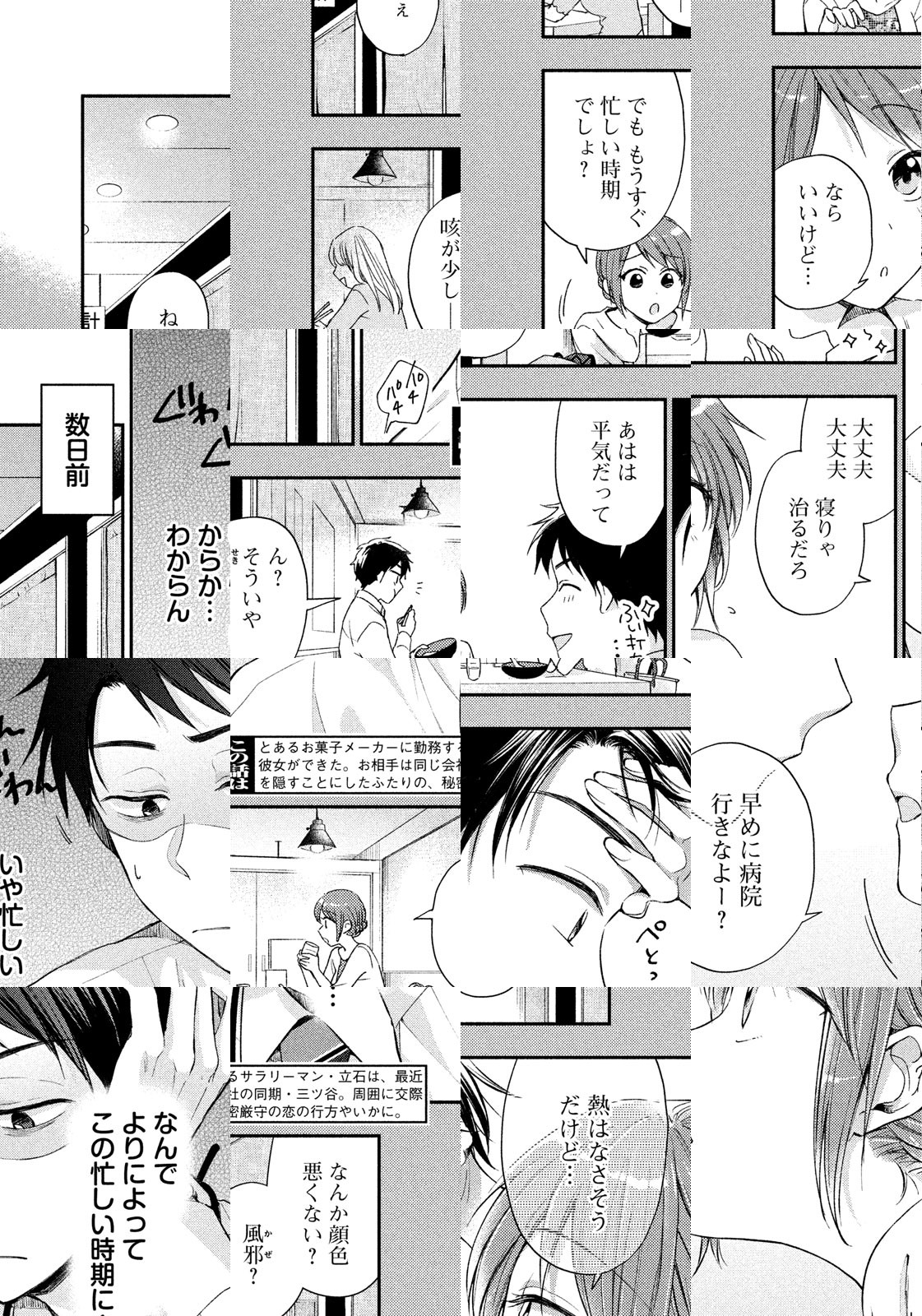 「俺たち、付き合わない?……内緒で」お菓子メーカーの経理部に勤めるアラサー男子・立石には、秘密があった。それは、昨日できたばかりの、かわいい恋人の存在。なぜなら相手は、同じ会社の企画部で働く勝気な同期女子・三ツ谷だから――! してないひとも、あこがれてるひとも、迷惑してるひとも、きっと言いたいことがある。ちょっとは覗いてみたくなる。秘密厳守のピュア社内恋愛ストーリー!