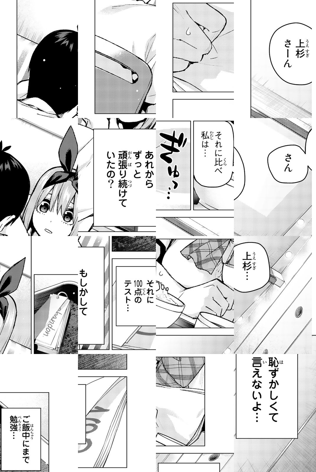 貧乏な生活を送る高校2年生・上杉風太郎のもとに、好条件の家庭教師アルバイトの話が舞い込む。ところが教え子はなんと同級生!! しかも五つ子だった!! 全員美少女、だけど「落第寸前」「勉強嫌い」の問題児! 最初の課題は姉妹からの信頼を勝ち取ること…!? 毎日がお祭り騒ぎ! 中野家の五つ子が贈る、かわいさ500%の五人五色ラブコメ開演!!