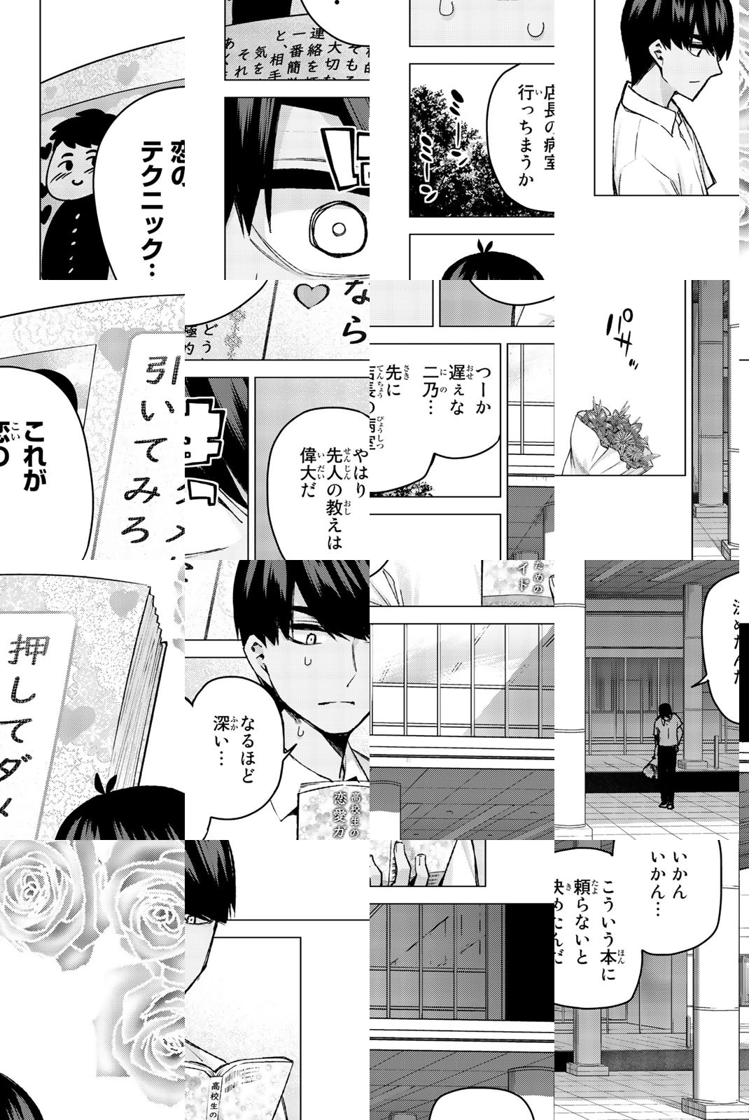 貧乏な生活を送る高校2年生・上杉風太郎のもとに、好条件の家庭教師アルバイトの話が舞い込む。ところが教え子はなんと同級生!! しかも五つ子だった!! 全員美少女、だけど「落第寸前」「勉強嫌い」の問題児! 最初の課題は姉妹からの信頼を勝ち取ること…!? 毎日がお祭り騒ぎ! 中野家の五つ子が贈る、かわいさ500%の五人五色ラブコメ開演!!