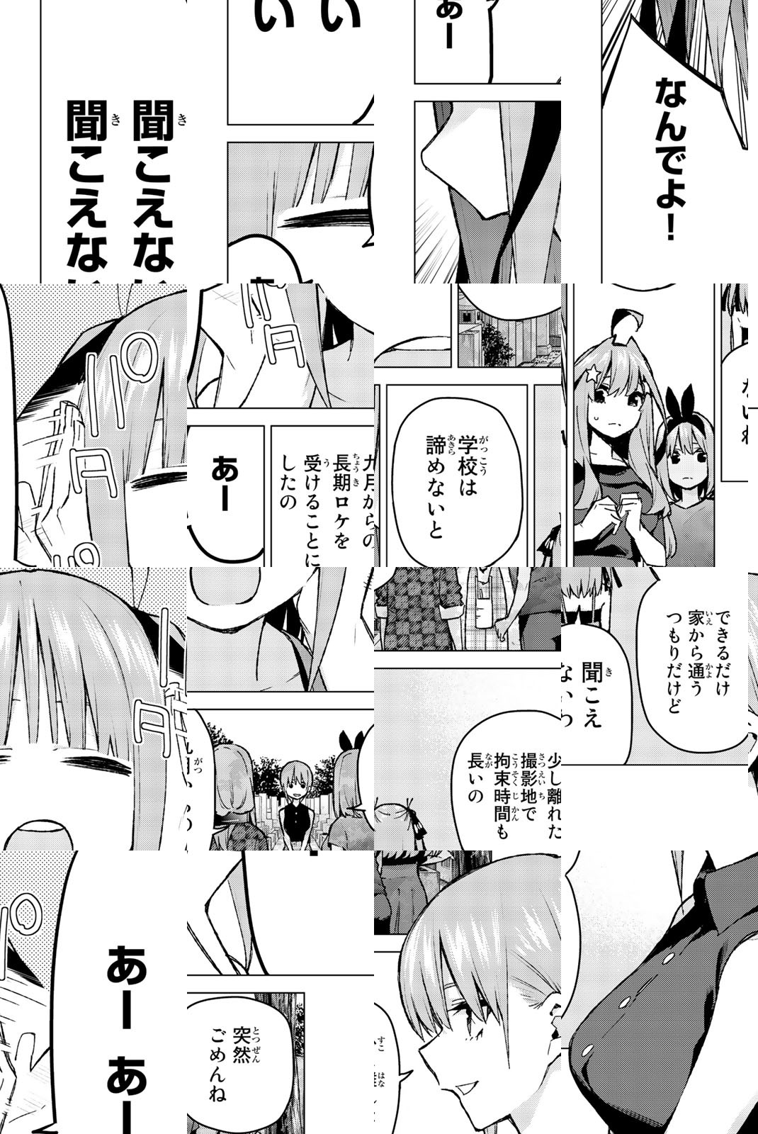 貧乏な生活を送る高校2年生・上杉風太郎のもとに、好条件の家庭教師アルバイトの話が舞い込む。ところが教え子はなんと同級生!! しかも五つ子だった!! 全員美少女、だけど「落第寸前」「勉強嫌い」の問題児! 最初の課題は姉妹からの信頼を勝ち取ること…!? 毎日がお祭り騒ぎ! 中野家の五つ子が贈る、かわいさ500%の五人五色ラブコメ開演!!