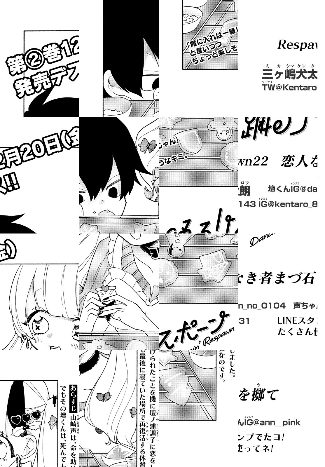 壇ノ浦調子(だんのうら・ちょうし)は、死んでも死んでも、最後に寝ていた場所で生き返るという、RPGの主人公みたいな「リスポーン」体質。そんな彼に命を救われた山崎声(やまざき・あん)は、調子に心を奪われてしまった。声の執拗でヘビーな愛に、調子は応えられるのか。超新鋭による最凶ヤンデレラブコメ開幕。