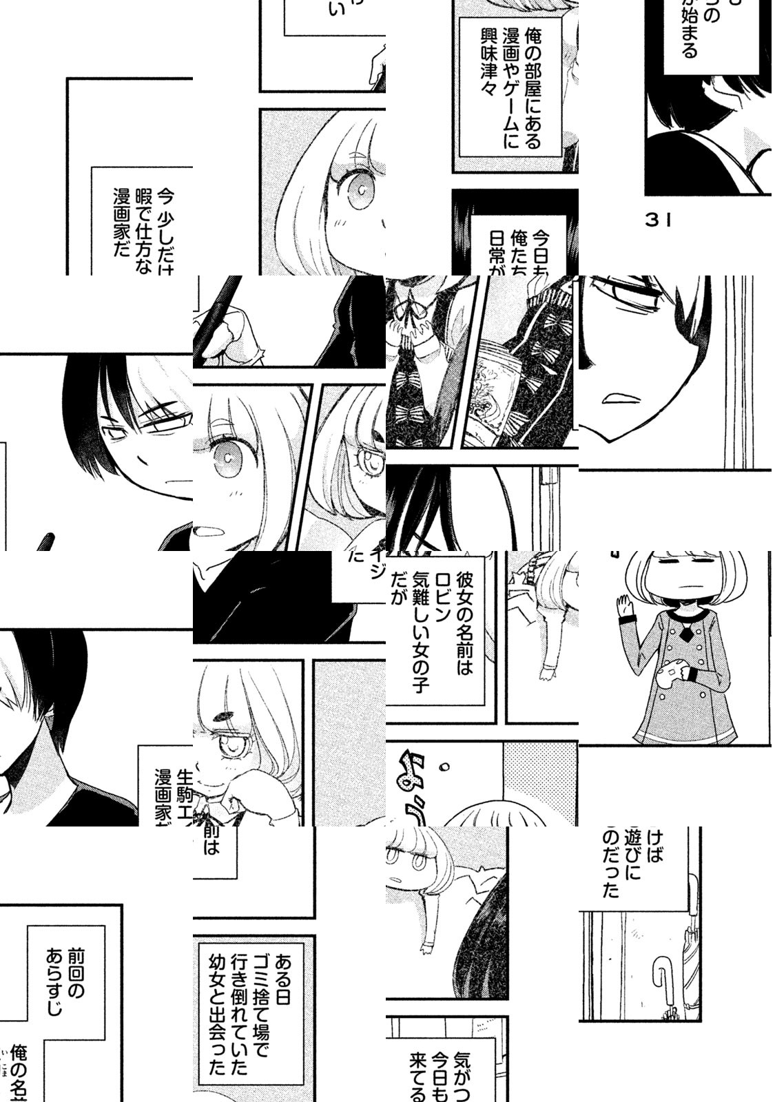 スランプに苦しむ漫画家のエイジは、ある日、謎の金髪ちびっこが行き倒れている現場に遭遇する。彼女の名は、ロビン。ほぼニートな現状を憂うエイジと、異国でのニート生活を満喫するロビン。ダメなふたりの楽しい共同生活が始まる。『ぱにぽに』の氷川へきる、待望の金髪ちびっこ最新作! 読むとダメになる、年の差自堕落コメディ♪