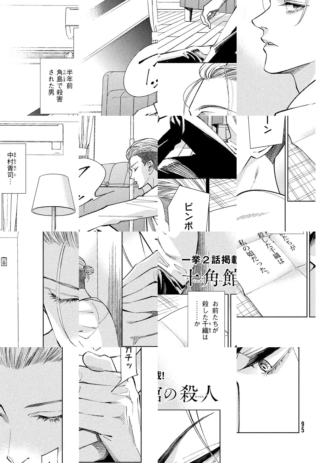 孤島に建つ十角形の奇妙な館を、大学のミステリ研究会に所属する7人が訪ねる。この館を設計した中村青司は、半年前に謎の焼死を遂げていた。そして、凄惨な殺人劇が、幕を開ける――。2018年に第22回日本ミステリー文学大賞を受賞した綾辻行人による新本格ミステリ『十角館の殺人』を、美麗画力の清原紘が描く!
