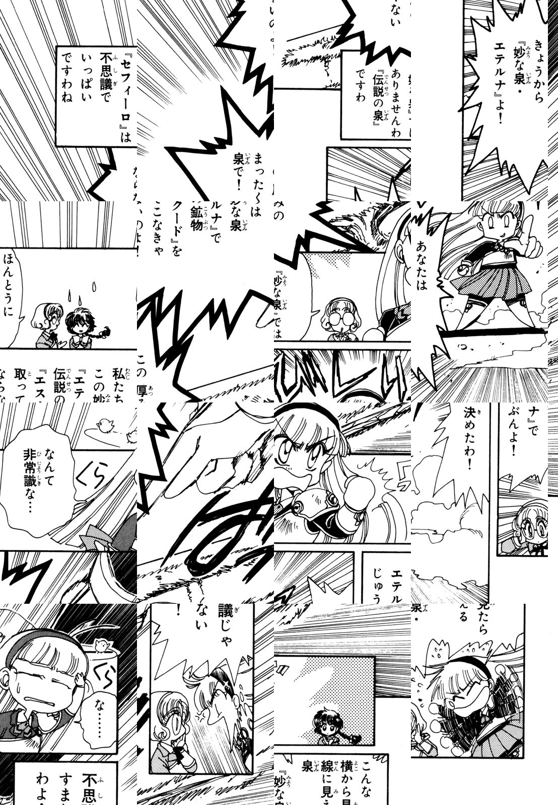 異世界のエメロード姫に招喚された光・海・風。姫を救うために魔法騎士になる3人の少女の運命は!? CLAMPが贈るネオRPGアドベンチャー。