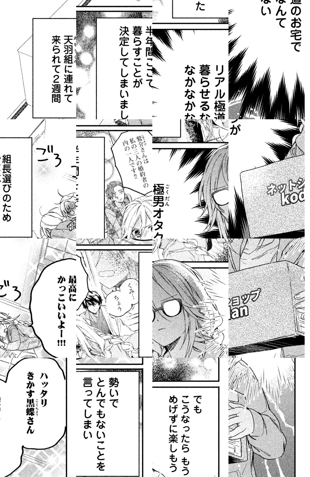 桜(ゲームを愛する引きこもりオタク)が助けたおじいさんは、なんと極道の組長だった! 感激した組長は、孫の三兄弟に「桜さんをオトした者を次期組長にする」と宣言。優しい長男、ヤンチャな次男、クールな三男…イケメンヤクザ3兄弟に囲まれた「極妻デイズ」はドキドキの連続で…!? まんがアプリ「パルシィ」で1位にランクインした、”極道×オタク”4角関係ラブ!