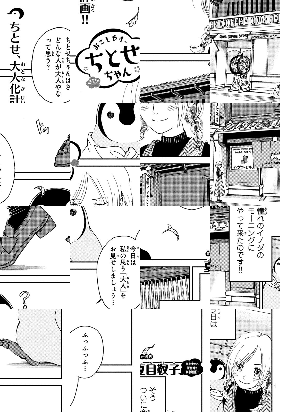 京都に住む子ペンギン、その名もちとせちゃん。もふもふした愛らしい子ペンギンのちとせちゃんは、おいしいものや楽しいことが大好き。人々と触れ合ったり、おいしいものを食べ(させてもらっ)たり――好奇心のおもむくまま、京都の街をうろうろします。清水寺・銀閣寺・祇園……誰もが知っている京都の名所をペンギンの視点から描きます。なつかしくてどこかあたたかい、ほっと心がやすらぐような癒しのペンギンショート。