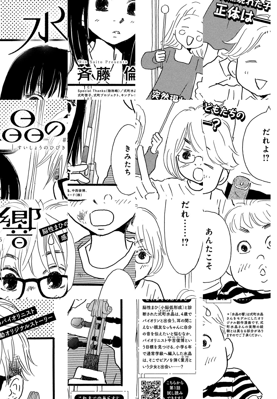 3歳のときに脳性まひ(小脳低形成)と診断された式町水晶はバイオリニストを目指している。耳の聞こえない親友なっちゃんとの交流の中で、自分の音をどう伝えたらいいのか悩むが、そんなときバイオリニスト中吉俊博のライブを観て衝撃を受ける。一つ年上のなっちゃんの卒業が間近に迫り、なっちゃんに「音」を聴かせたい水晶は……!? この漫画はバイオリニスト式町水晶さんをモデルにしたフィクションです。