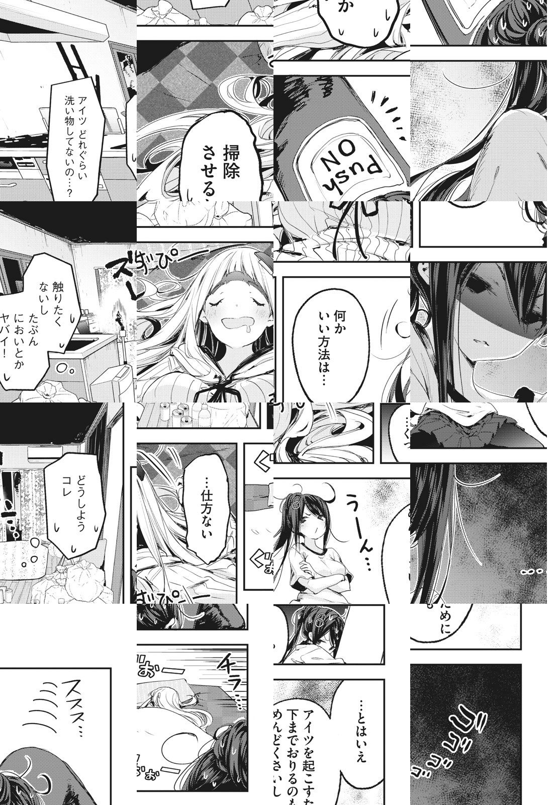 目を覚ますと身長12センチの体になっていた女子高生・小岩望実(コイワノゾミ)が命からがらたどり着いたのは、ひきこもニートの大久保由芽(オオクボユメ)が住むアパートの一室。空き缶やゴミの散らばるユメの部屋だが、記憶も行くアテもないノゾミは当面その部屋でこっそりと暮らすことに決め……!? てのひらサイズの女子高生がワンルームで繰り広げる日常系アドベンチャー!