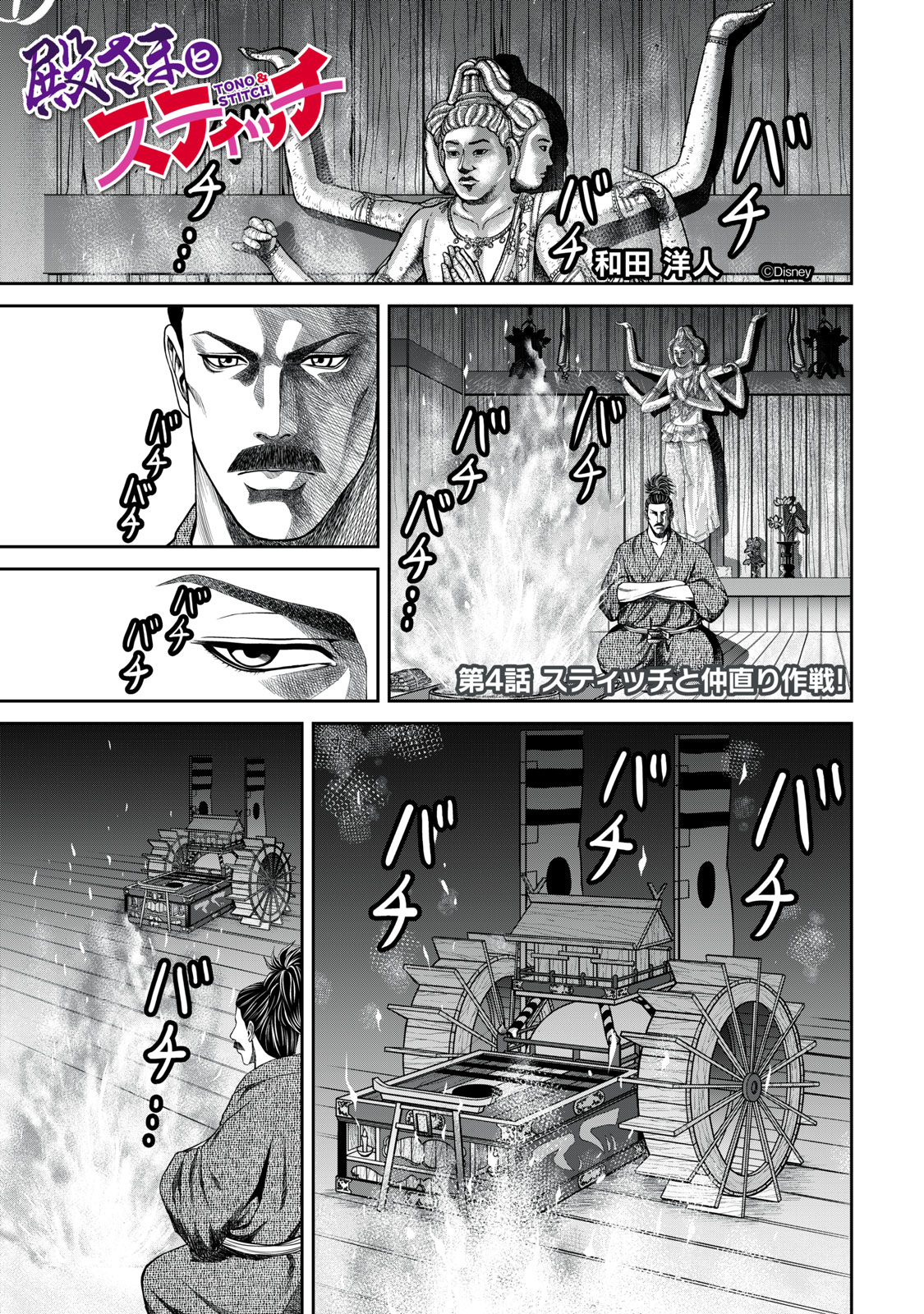 あのスティッチが戦国時代に!? 銀河連邦から命からがら逃亡したスティッチが不時着したのは、ハワイではなく日本。…それも、戦国時代の日本だった! 下剋の国を平らげ、民から恐れられる戦国武将・大和命尊は、空から降ってきたスティッチと遭遇。その姿を見るうち、自らの胸の裡に初めて沸き上がる感情に困惑する。「…可愛い――――。」戦国武将・命尊と宇宙生物・スティッチとの心の交流を描くハートフルコメディ、ここに開幕!