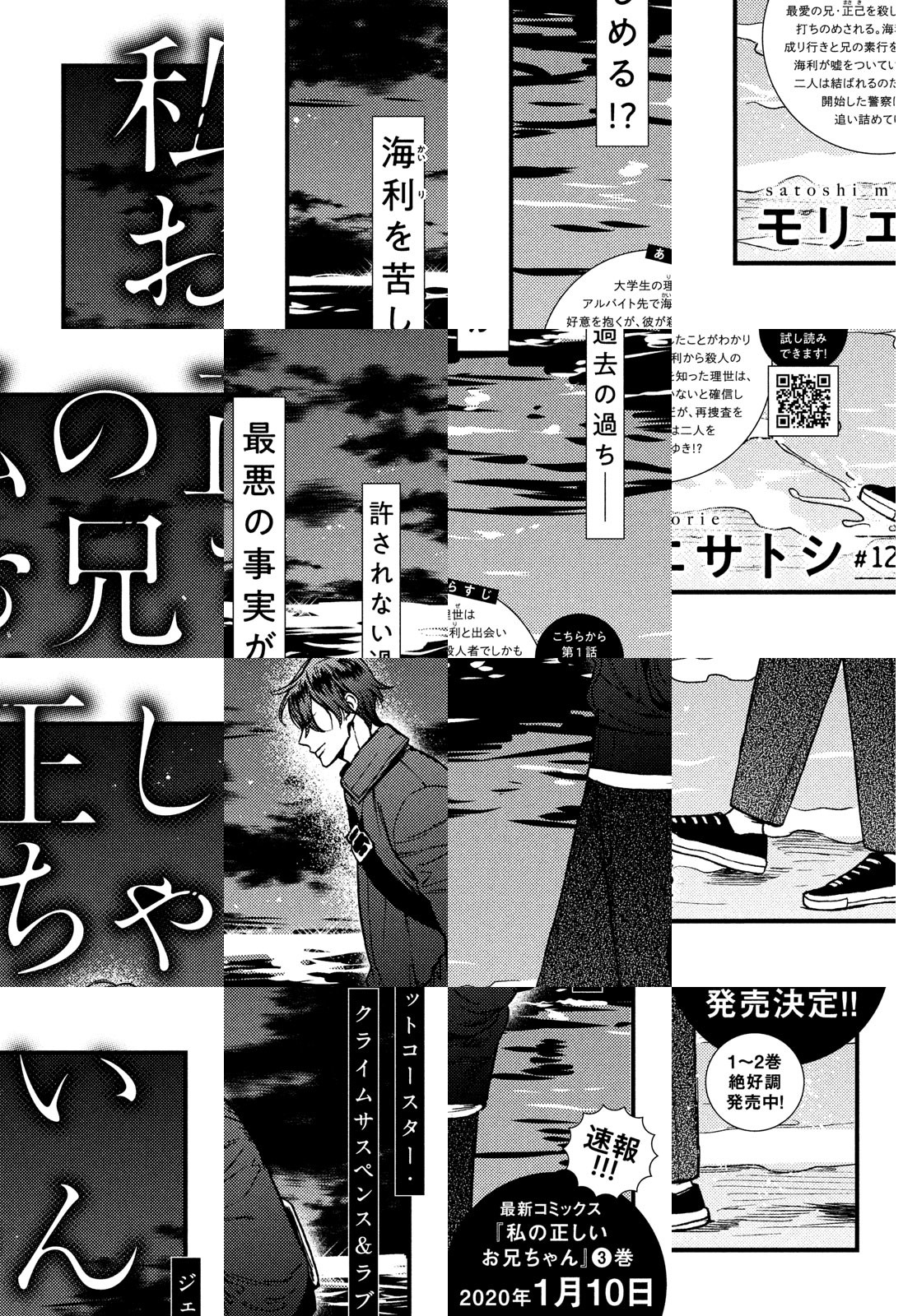 大学生の理世はアルバイト先のスーパーで働く海利と出会う。眠れない海利に肩を貸すうち、幼いころ別れた兄の思い出を重ね、理世は好意を抱くように。しかし、海利のアパートで彼が人を殺したという日記を見てしまい衝撃を受ける。好きになった人の正体は一体? 次々と明らかになる真実と海利への愛が理世を追いつめる! モリエサトシが贈るジェットコースター・クライムサスペンス&ラブ!!