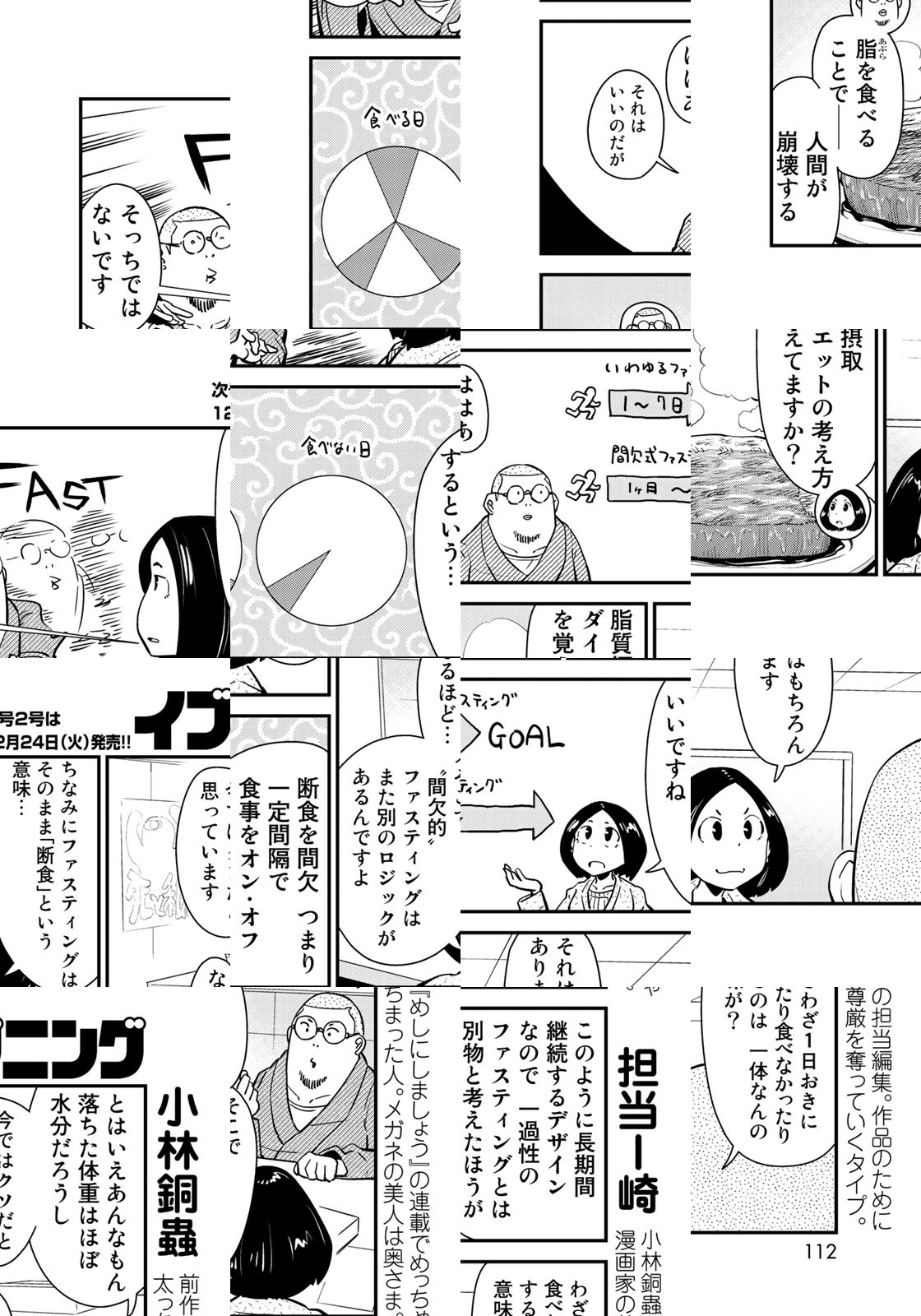 数多の“やり過ぎ”料理を生み出した『めしにしましょう』の作者・小林銅蟲、40才。3年の連載で肥えに肥えた体にカツを入れるべく、次なる連載はダイエットルポ漫画!目標は6ヵ月でマイナス15㎏――! 四十路漫画家の本気のダイエットに刮目せよ!※雑誌掲載時は『めしのあとはやせましょう』というタイトルでした。