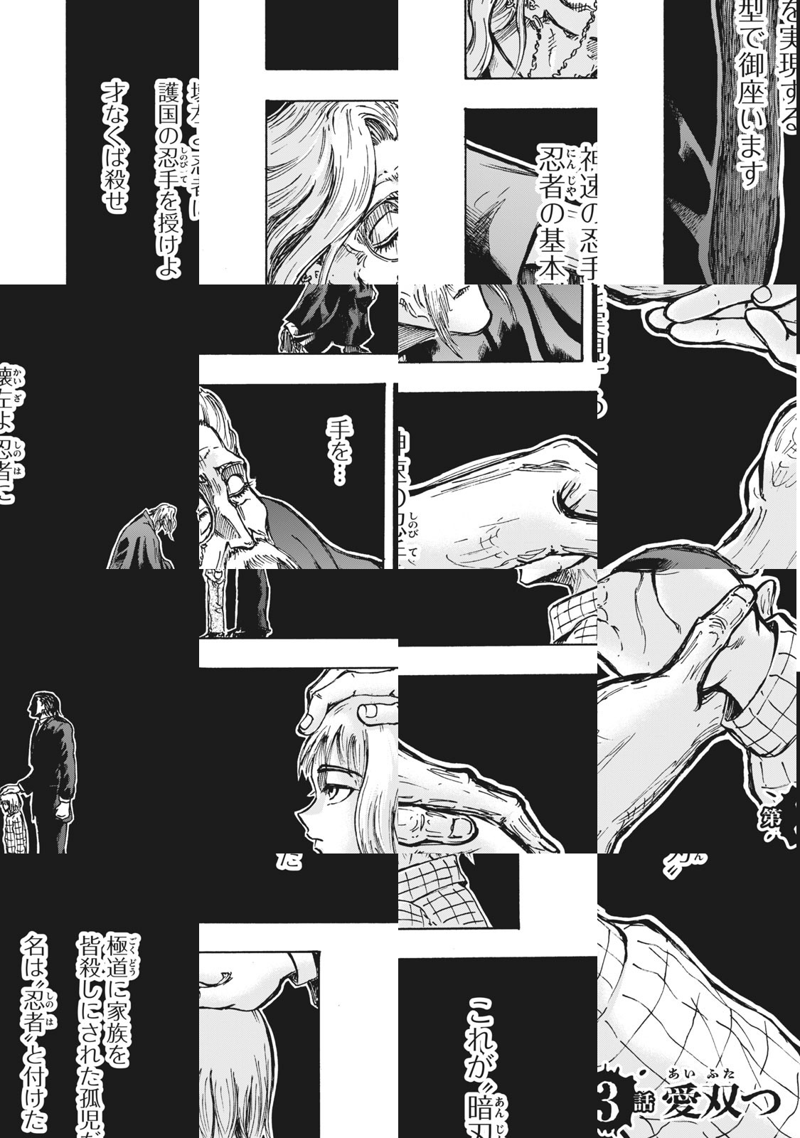 トラウマから笑えない少年・忍者<しのは>、表向きはエリート会社員ながら裏では組を牛耳る極道<きわみ>。そんな2人が出会った時、300年にわたる忍者<ニンジャ>と極道<ゴクドウ>の殺し合いの炎が熱く燃え盛る! 孤独を抱えた漢達による、情熱と哀切に彩られた命のやり取り。決めようか…忍者と極道、どちらが生きるかくたばるか!!