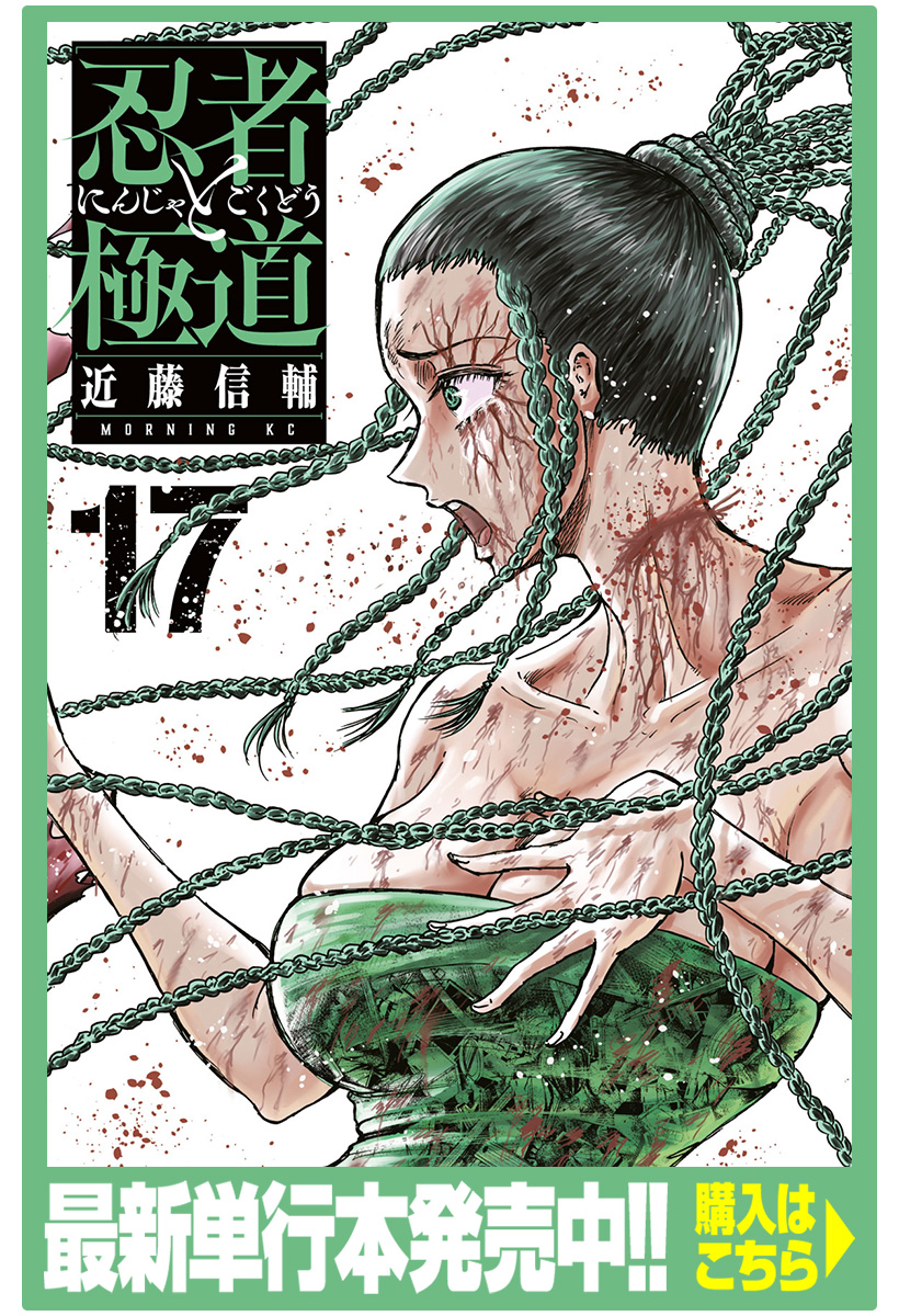 トラウマから笑えない少年・忍者<しのは>、表向きはエリート会社員ながら裏では組を牛耳る極道<きわみ>。そんな2人が出会った時、300年にわたる忍者<ニンジャ>と極道<ゴクドウ>の殺し合いの炎が熱く燃え盛る! 孤独を抱えた漢達による、情熱と哀切に彩られた命のやり取り。決めようか…忍者と極道、どちらが生きるかくたばるか!!