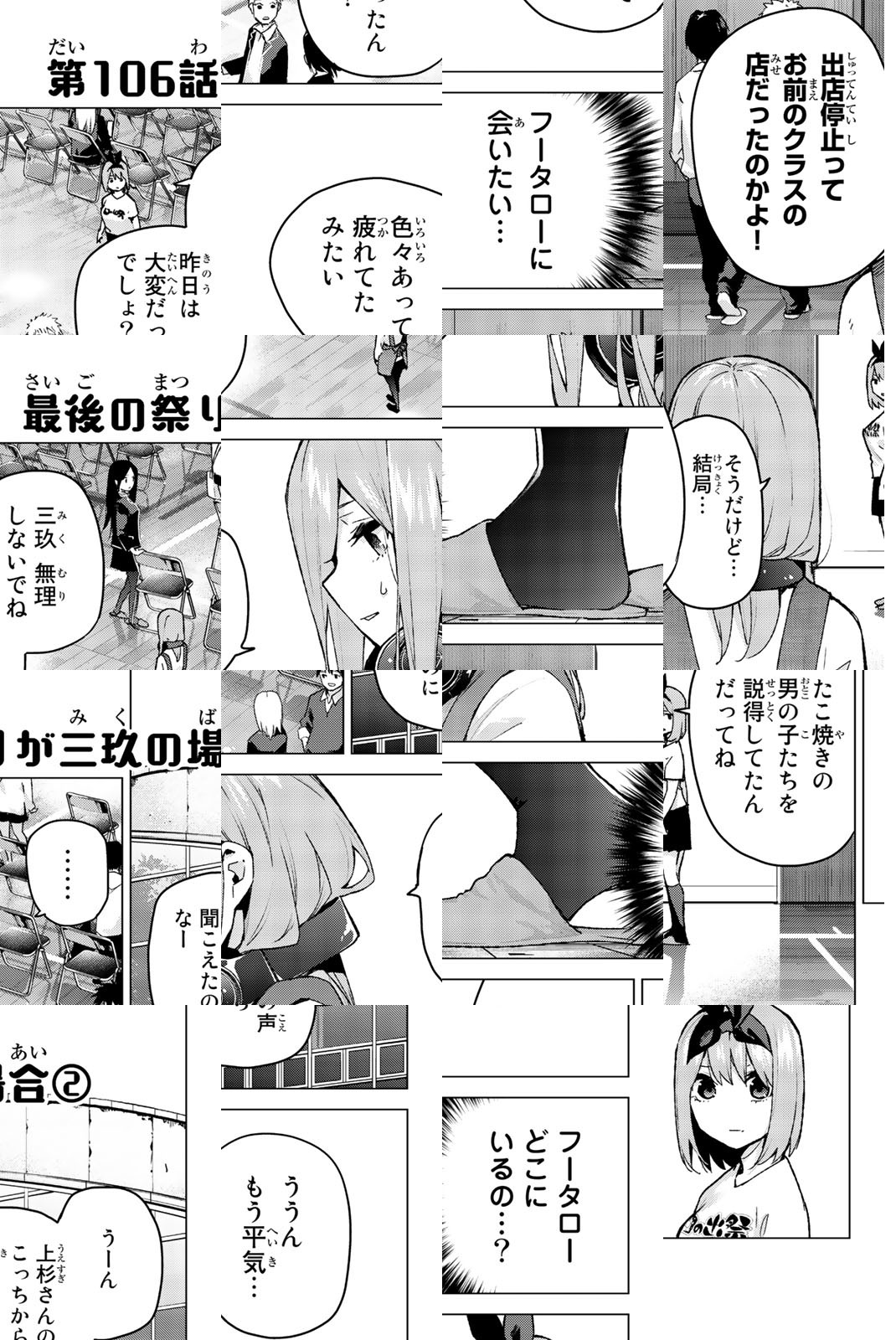 貧乏な生活を送る高校2年生・上杉風太郎のもとに、好条件の家庭教師アルバイトの話が舞い込む。ところが教え子はなんと同級生!! しかも五つ子だった!! 全員美少女、だけど「落第寸前」「勉強嫌い」の問題児! 最初の課題は姉妹からの信頼を勝ち取ること…!? 毎日がお祭り騒ぎ! 中野家の五つ子が贈る、かわいさ500%の五人五色ラブコメ開演!!