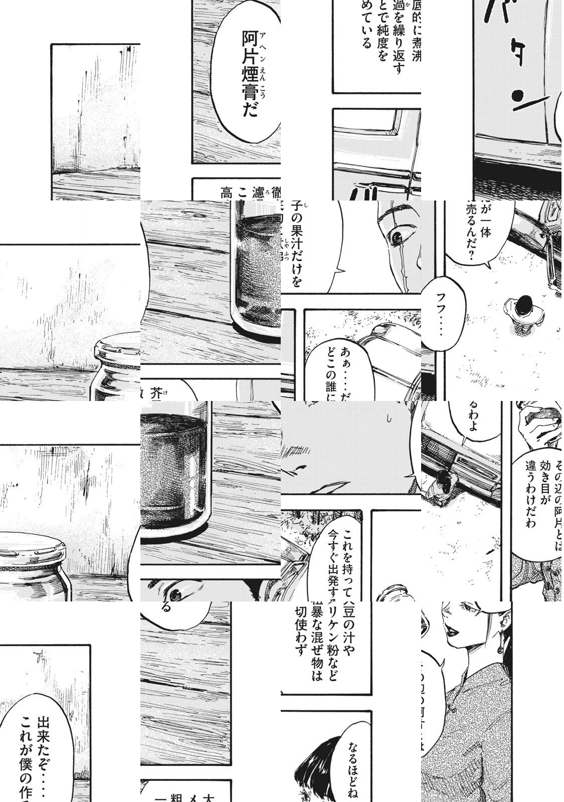 「満州で一番軽いものは、人の命だ」――。時は昭和12年。関東軍の兵士として満州にやってきた日方勇は、戦地で右目の視力を失ってしまう。「使えない兵隊」として軍の食糧を作る農業義勇軍に回され、上官に虐げられる日々を送るも、ある日農場の片隅で麻薬“阿片(アヘン)”の原料であるケシが栽培されていることに気づく。病気の母を救うため阿片の製造に手を染める勇だったが、その決断が自身の、そして満州の運命を狂わせていく…。