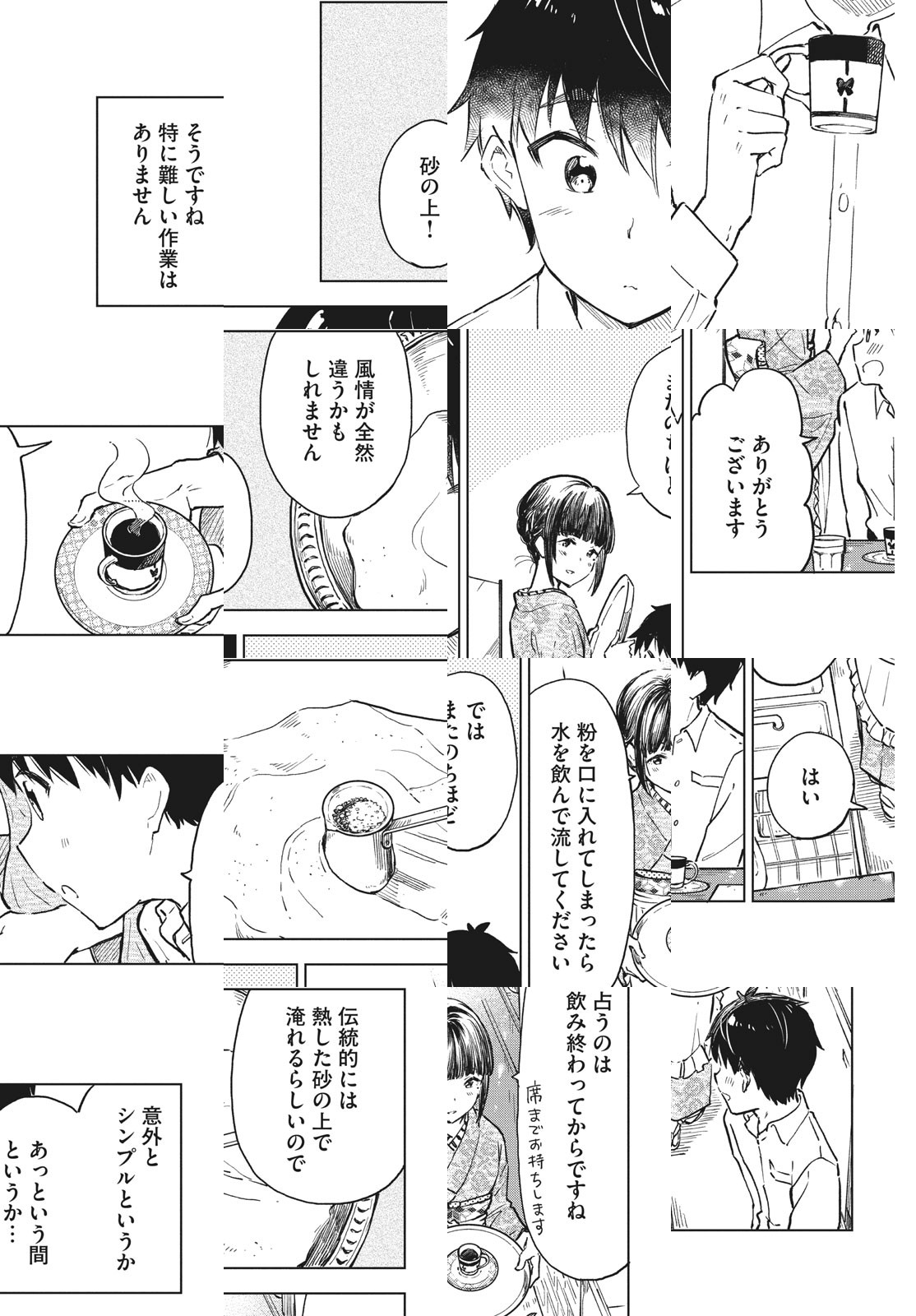 "大人"への憧れを抱く高校3年生の波多野貴樹(はたのたかき)は、長らく閉店していたはずの古びた喫茶店で、静かにカウンターに佇む年上の女性に心奪われる。どこかはかなげな「しづ」と呼ばれる彼女が気になってその喫茶店・ユカリに通い始めた貴樹は、店を訪れるさまざまな客とのふれあいを通じて少しずつ“大人”というものを知っていく――。 少年と年上の女性が織りなすほろ苦いラブ×グロウアップストーリー!
