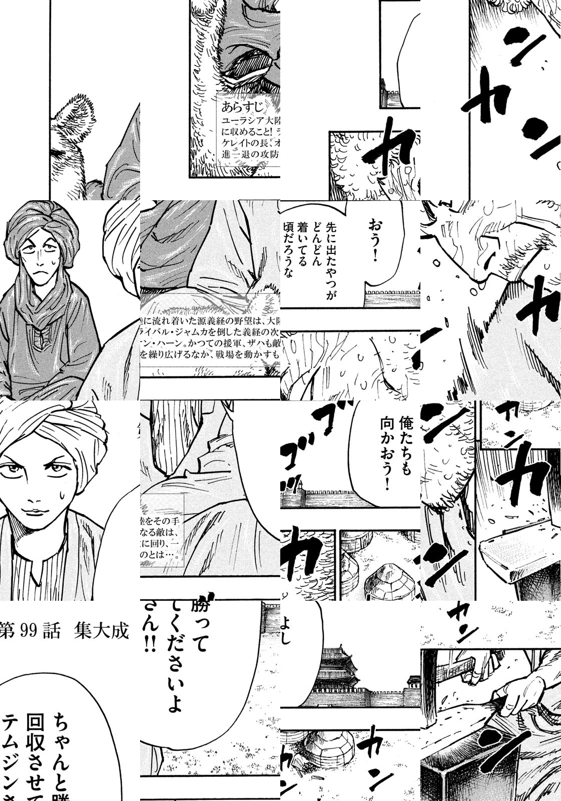 蝦夷地に住んでいた源義経は、兄・頼朝から追われていた。船に乗り込んで逃げようとしたが、その船は難破、着いた先はだだっ広い大陸。彼は復讐に囚われた人生を捨て、新たに生きることを決意した。裸一貫! 土地、人種、しがらみ。義経はすべてを飛び越え、ユーラシア大陸を駆け廻る! 成り上がり一大叙事詩!!