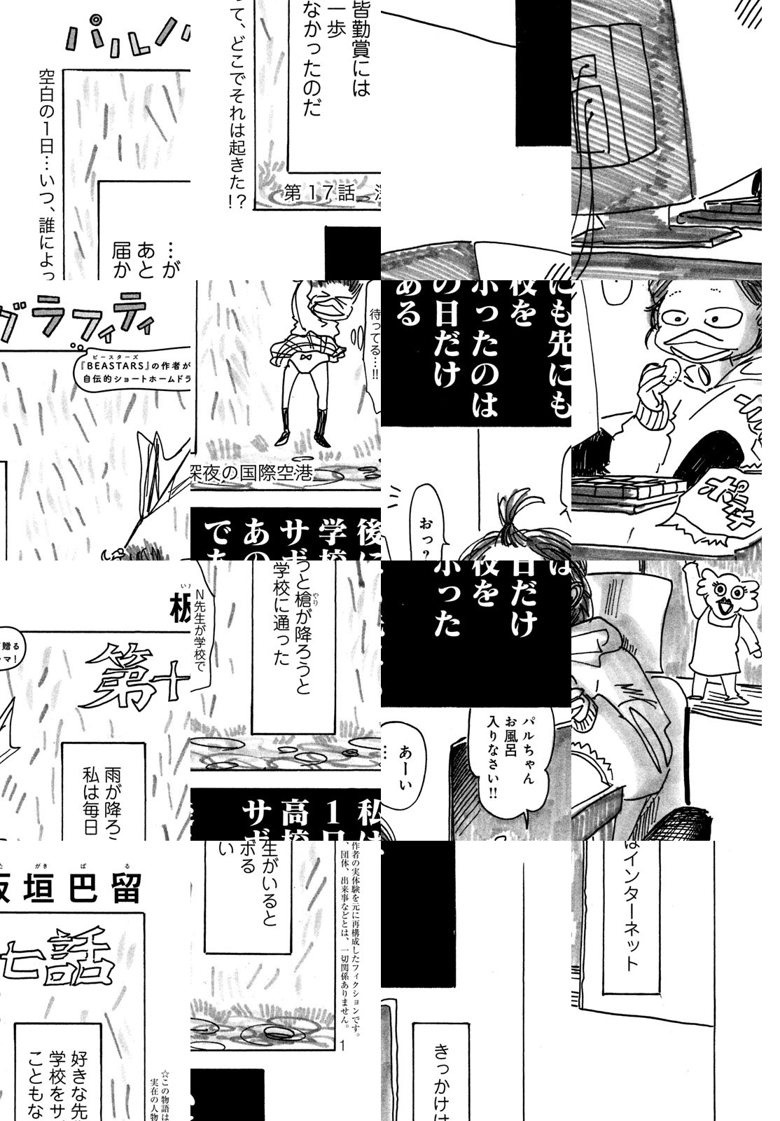 マンガ大賞2018をはじめ主要漫画賞を総ナメにした話題作『BEASTARS』の作者が贈る、くすっと笑った後にほろっと泣ける自伝的ショートホームドラマ! 板垣家のひねくれた末っ子だったパルが、なんでも褒めてくれる母、いつでも穏やかな長女、流行大好きなギャルだった次女、そして自分が生まれる前から漫画を描き続けている父との、大人になった今も胸に残る思い出を綴ります。