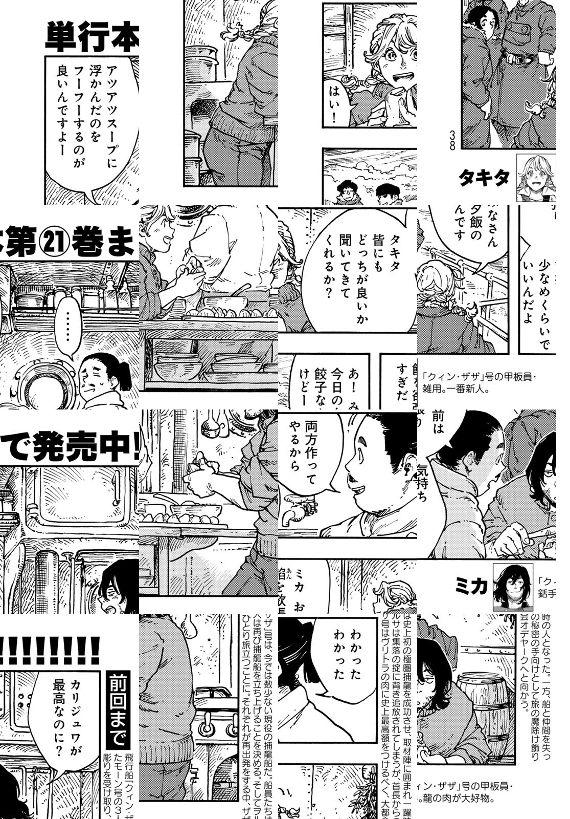 龍を追って、世界の空を往く捕龍船『クィン・ザザ号』。大物を捕まえれば一獲千金、獲りたての肉も食べ放題。でも、失敗したらもちろんお陀仏。空と龍に魅せられた乗組員たちの大冒険の旅&世界グルメ紀行!