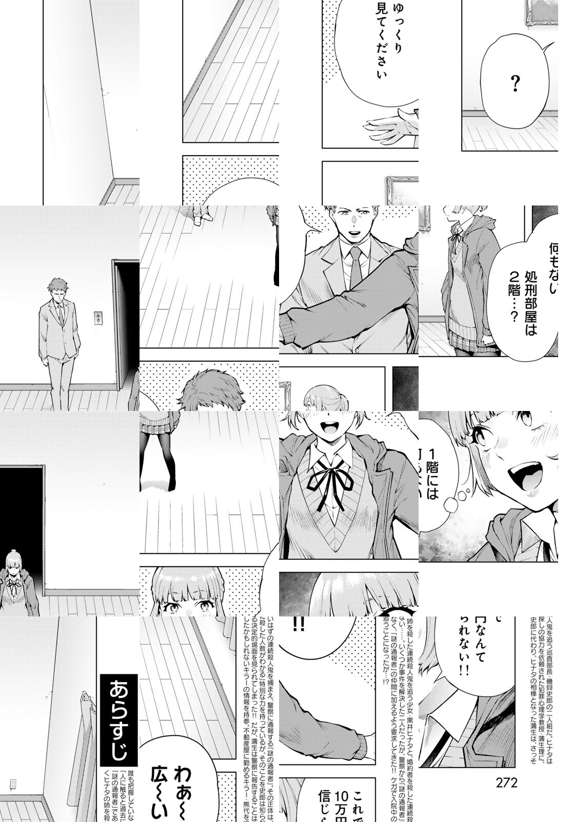 警察が把握していない連続殺人犯を捕らえて通報する「謎の通報者」。正体は何者なのか? どうやって闇に紛れたシリアルキラーに辿り着くのか? 目的を果たすべく、生活安全課の刑事磯貝史郎がその行方を追っていた! 第六感女子とはぐれ刑事のバディーサスペンス開幕!