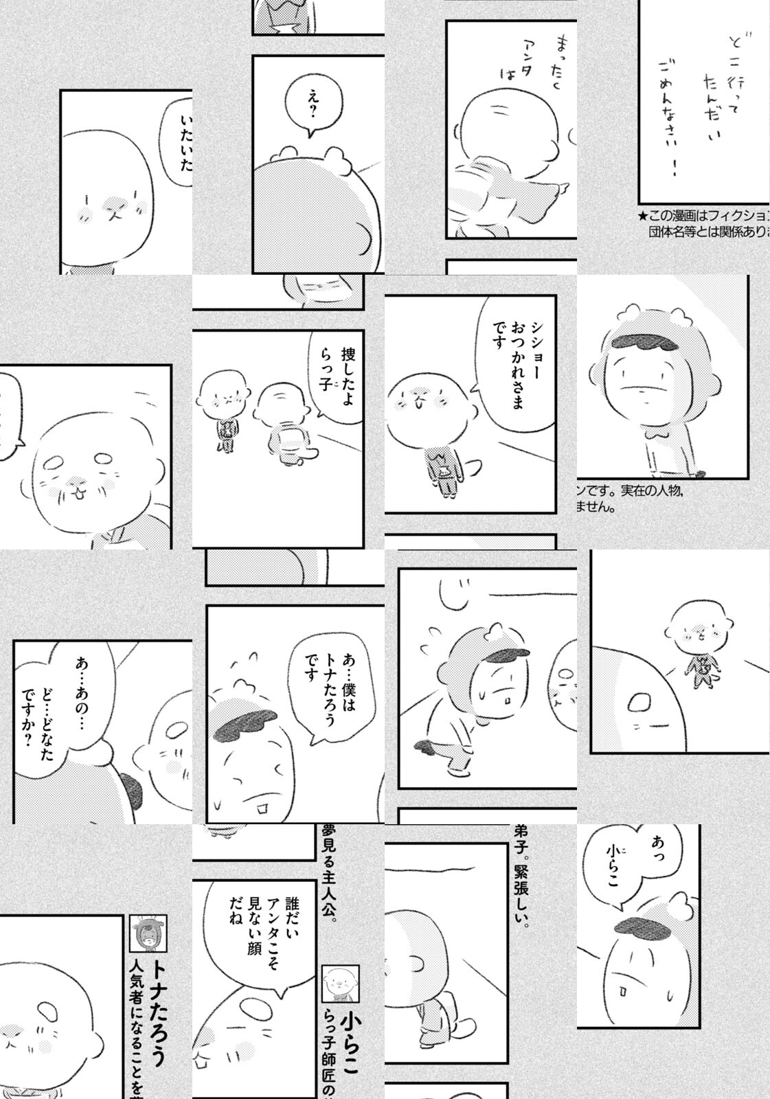先輩にはいびられ、後輩には舐められ、お客さんには気づかれない主人公・トナカイのトナたろう、ちょっとガサツでデリカシーのないスカンクのポール先輩、元気すぎるお猿のアーコ、大人気のパンダくんなど、どこか見たことあるような動物たちの楽屋での悲喜こもごもなアニマル賛歌。自分の才能や“動物関係”に今日も悩みながら切磋琢磨する動物たちの舞台裏を覗いてみませんか?