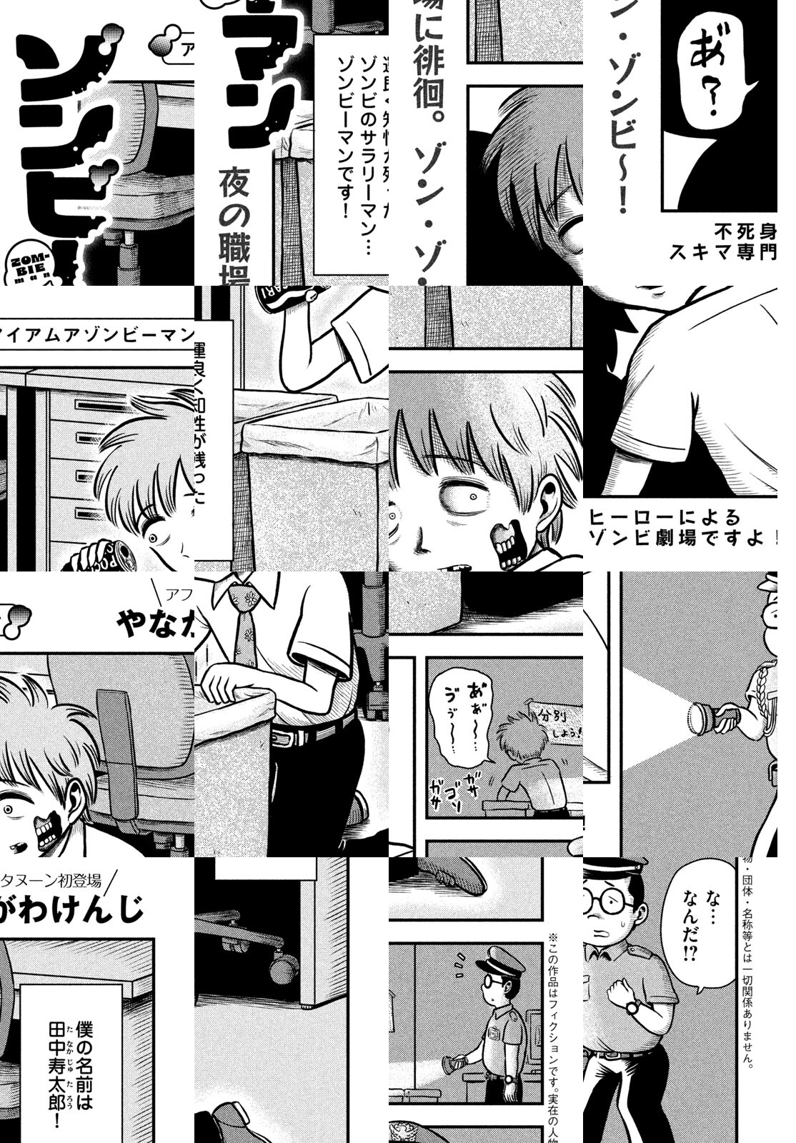 【アフタヌーン掲載読み切り】スキマ専門ゾンビ劇場!!田中寿太郎は奇跡的に理性が残ったゾンビ。生きてるときと同じように会社で働く企業戦士である。特別有能なわけではないけれど、アンデッドな身体で彼は働くことを止めない。諦めない。アフタヌーンのスキマを見つけて現れる、庶民派ヒーロー・ゾンビーマン参上!