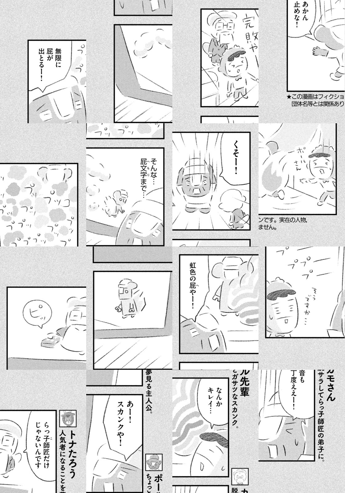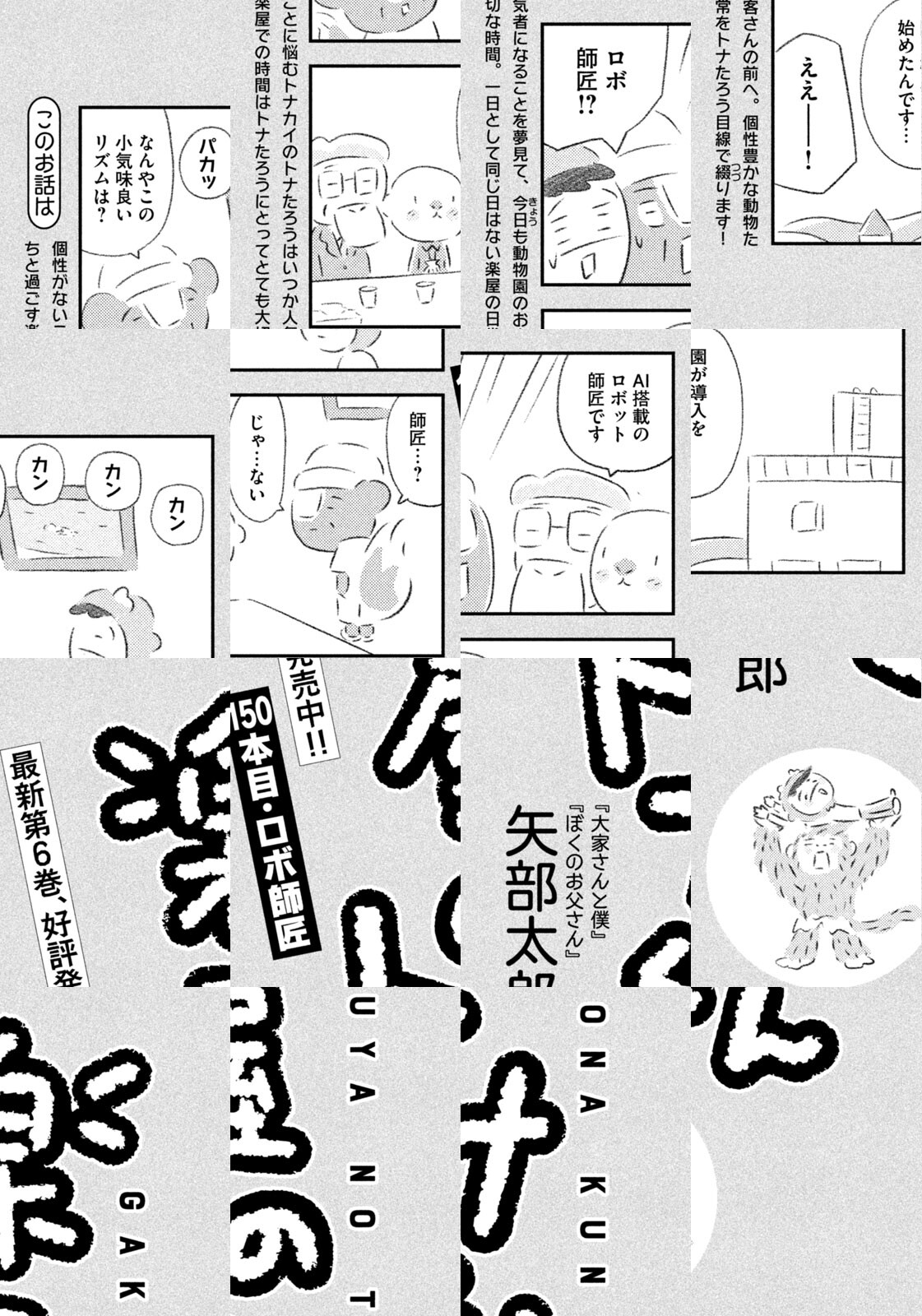 先輩にはいびられ、後輩には舐められ、お客さんには気づかれない主人公・トナカイのトナたろう、ちょっとガサツでデリカシーのないスカンクのポール先輩、元気すぎるお猿のアーコ、大人気のパンダくんなど、どこか見たことあるような動物たちの楽屋での悲喜こもごもなアニマル賛歌。自分の才能や“動物関係”に今日も悩みながら切磋琢磨する動物たちの舞台裏を覗いてみませんか?