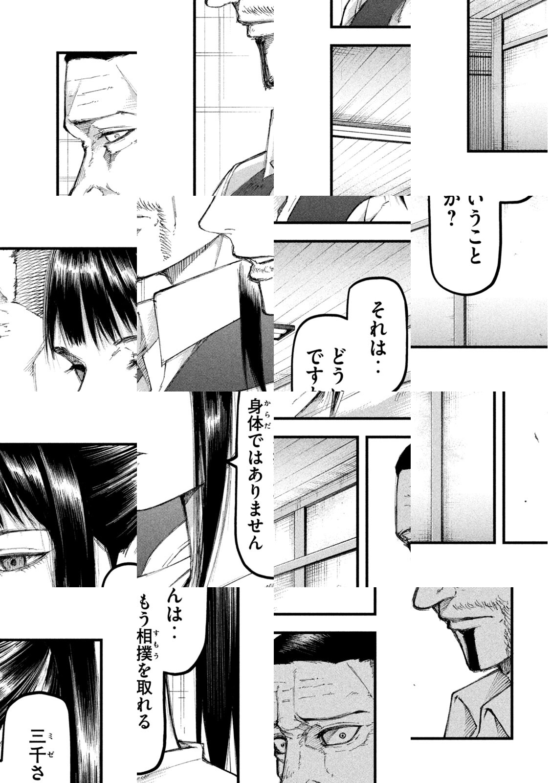 元大関・三千大吾。取組中の事故による3年間の昏睡から目覚めた彼を待っていたのは、32歳という肉体の限界と、番付外からの過酷な再起だった。周囲が引退を進言するなか、三千は事故前でも叶えることができなかった横綱の座を目指すことを宣言する。だが、三千の身体には異変が起きていて‥‥。土俵で命を燃やさんとする男にとって、人生最大の「大一番」が始まる。