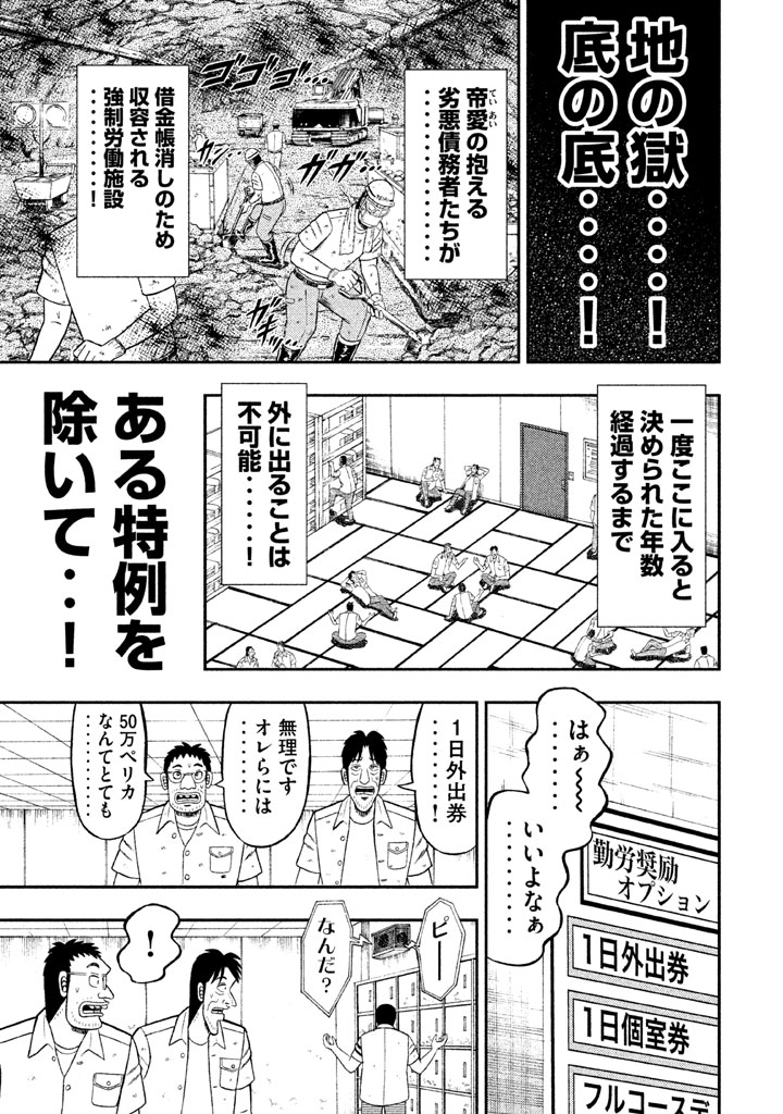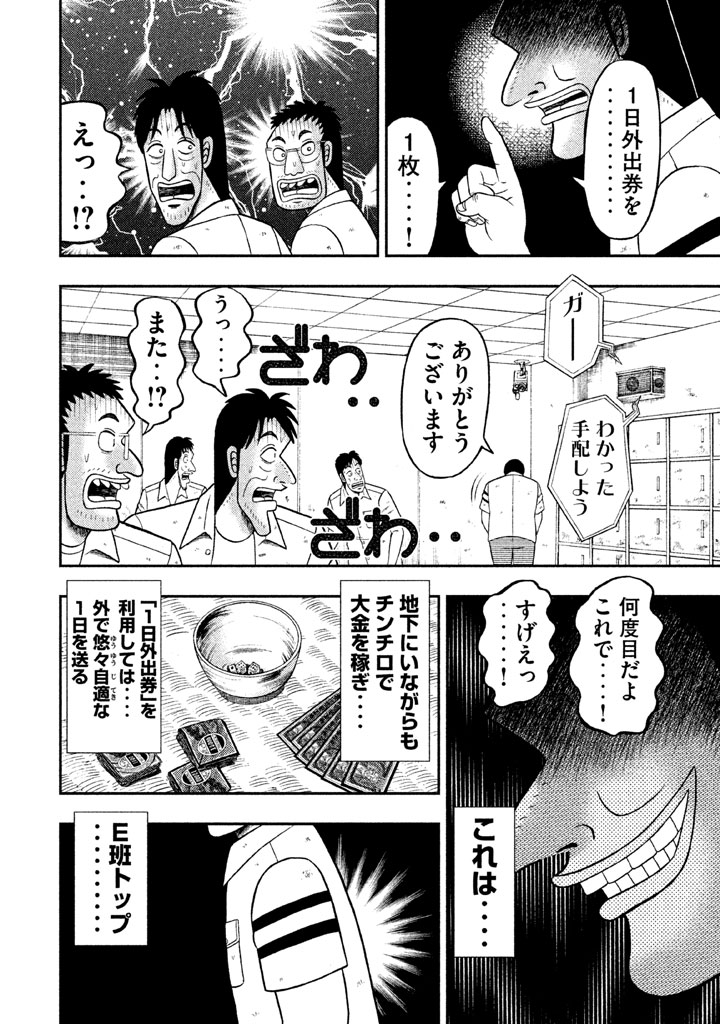 地の獄・・! 底の底・・! 帝愛地下労働施設・・! 劣悪な環境である地下にいながら「1日外出券」を使い、地上で贅の限りを尽くす男がいた・・! その名は大槻・・! E班・班長にして、1日を楽しみ尽くす匠・・! 飲んで食って大満喫・・! のたり楽しむ大槻を描く、飯テロ・スピンオフ・・!